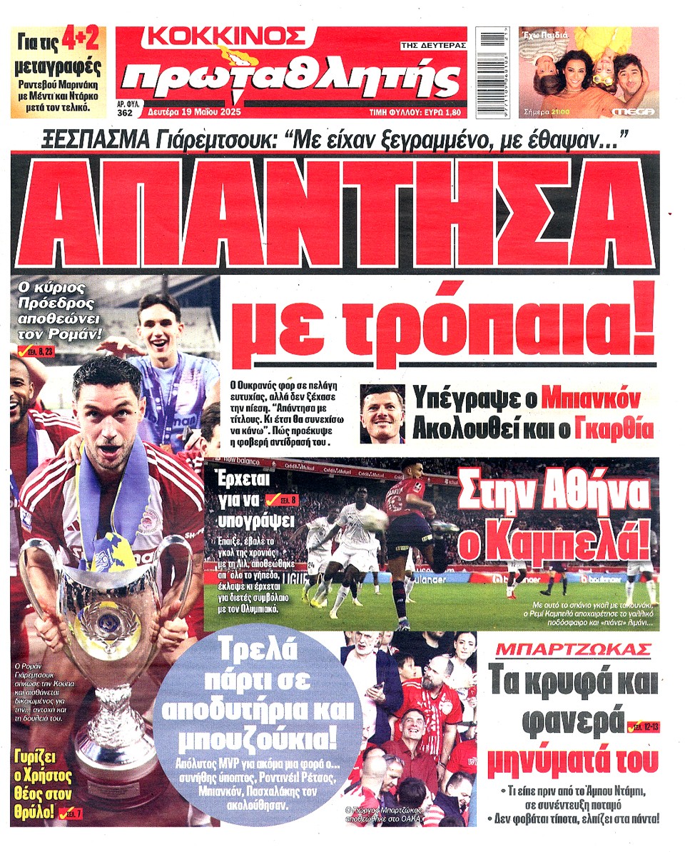 ΠΡΩΤΑΘΛΗΤΗΣ - 19 Μαΐου 2025