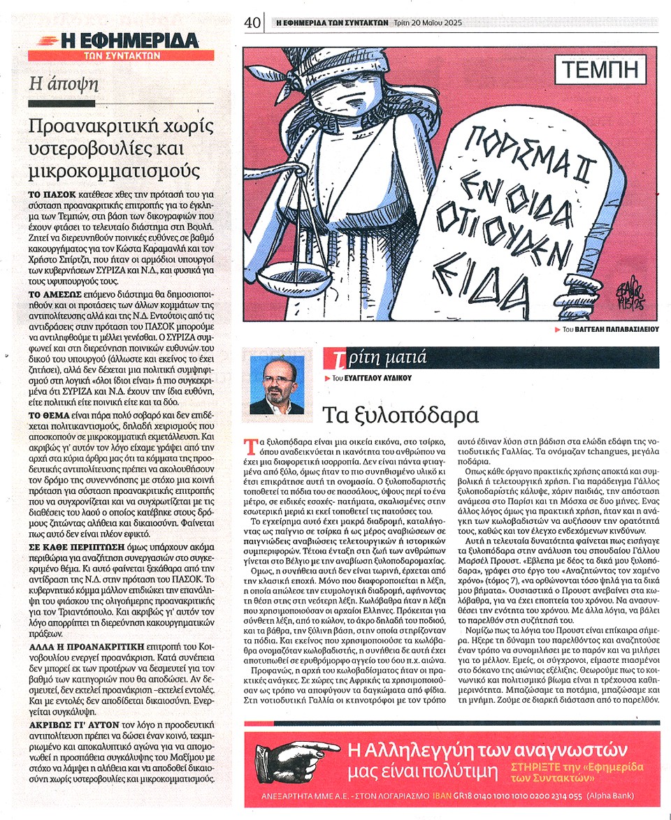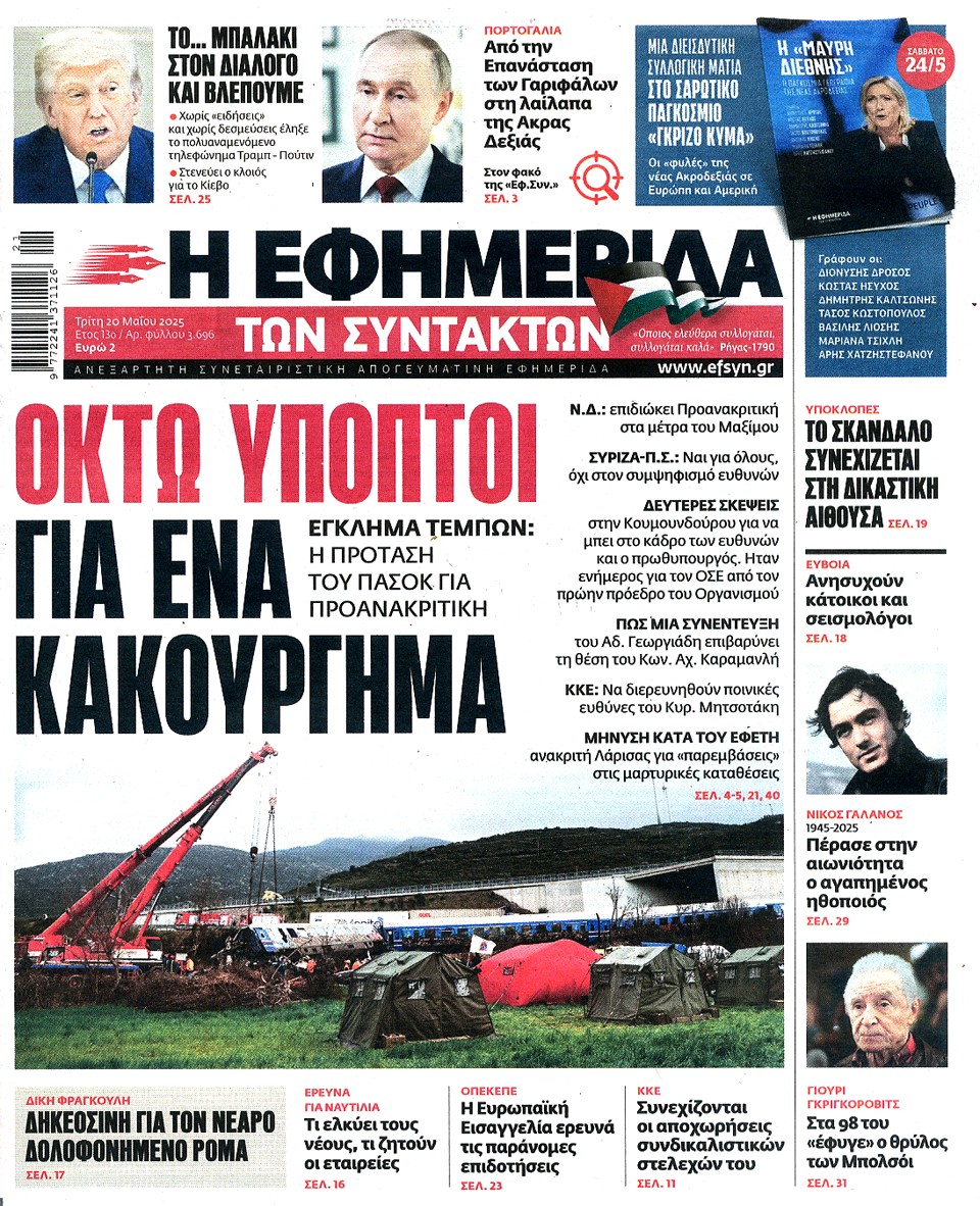 Η ΕΦΗΜΕΡΙΔΑ ΤΩΝ ΣΥΝΤΑΚΤΩΝ - 20 Μαΐου 2025