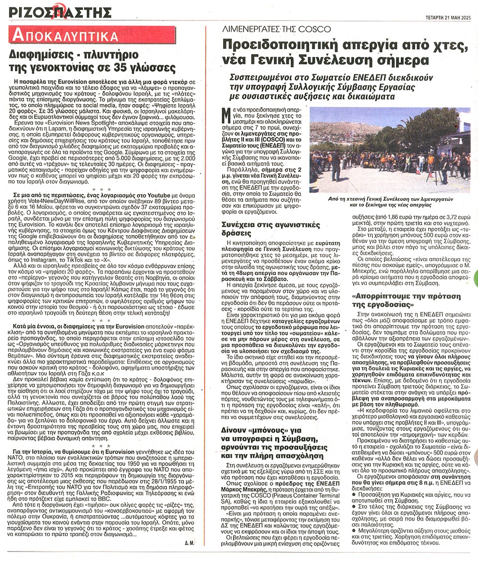 ΡΙΖΟΣΠΑΣΤΗΣ - 21 Μαΐου 2025