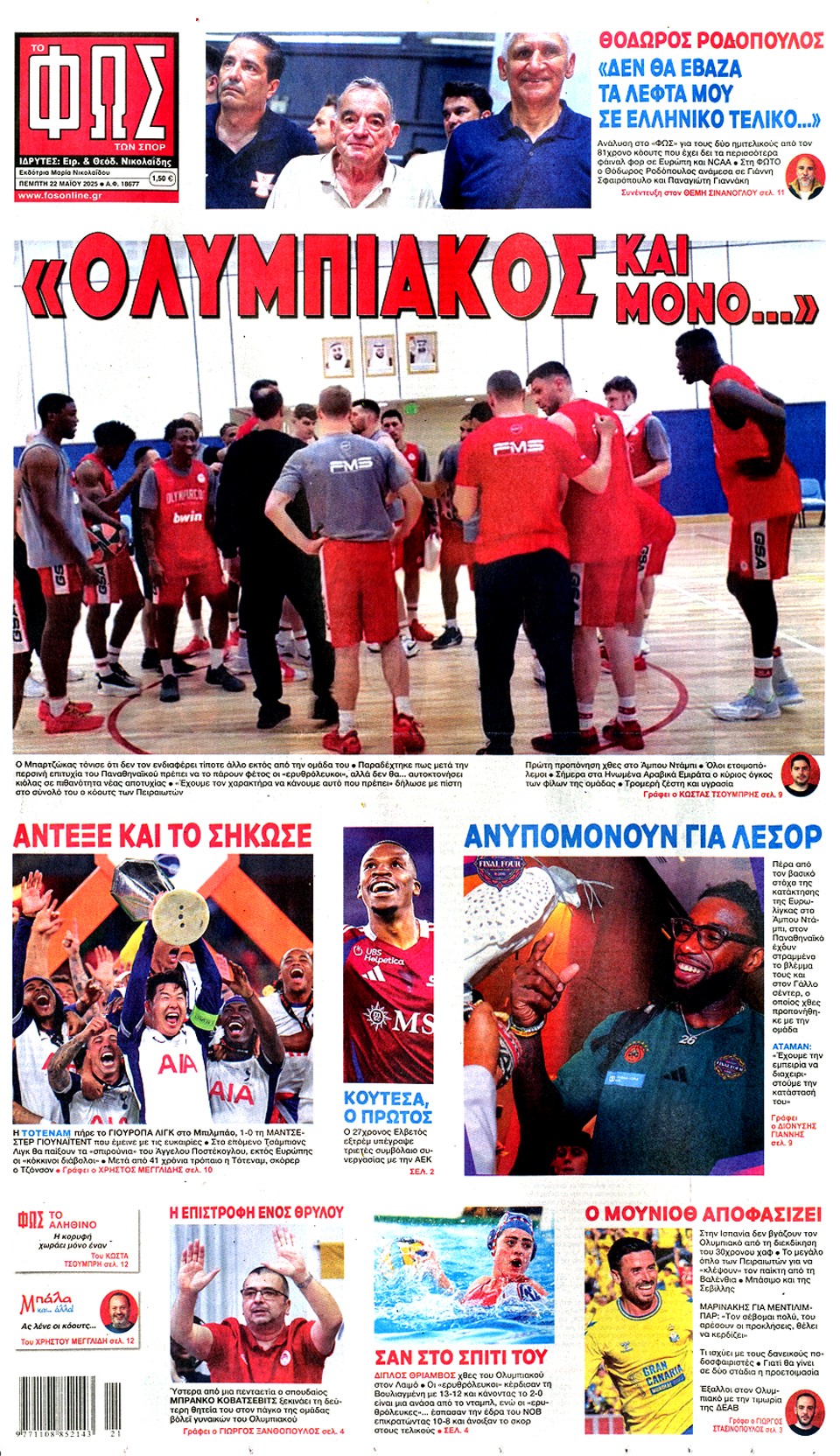 ΦΩΣ ΤΩΝ ΣΠΟΡ - 22 Μαΐου 2025
