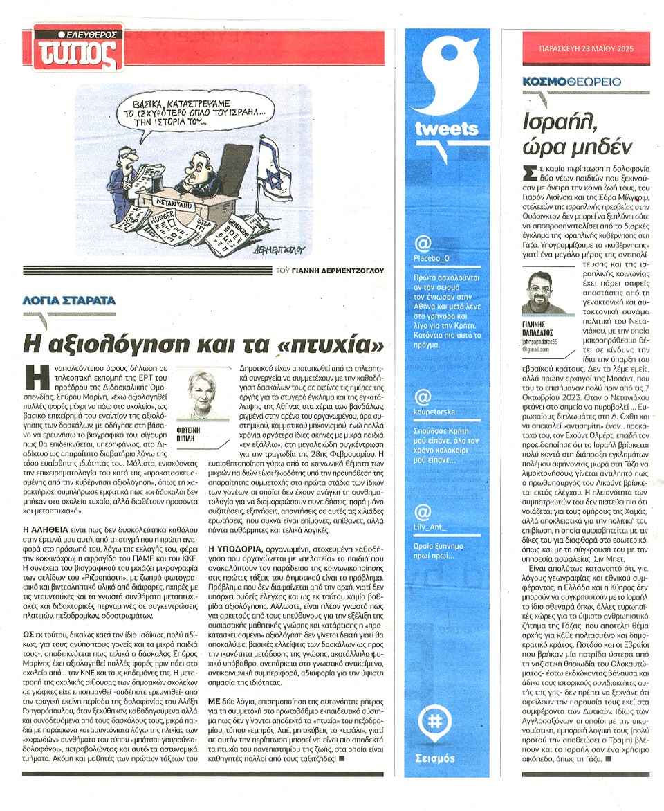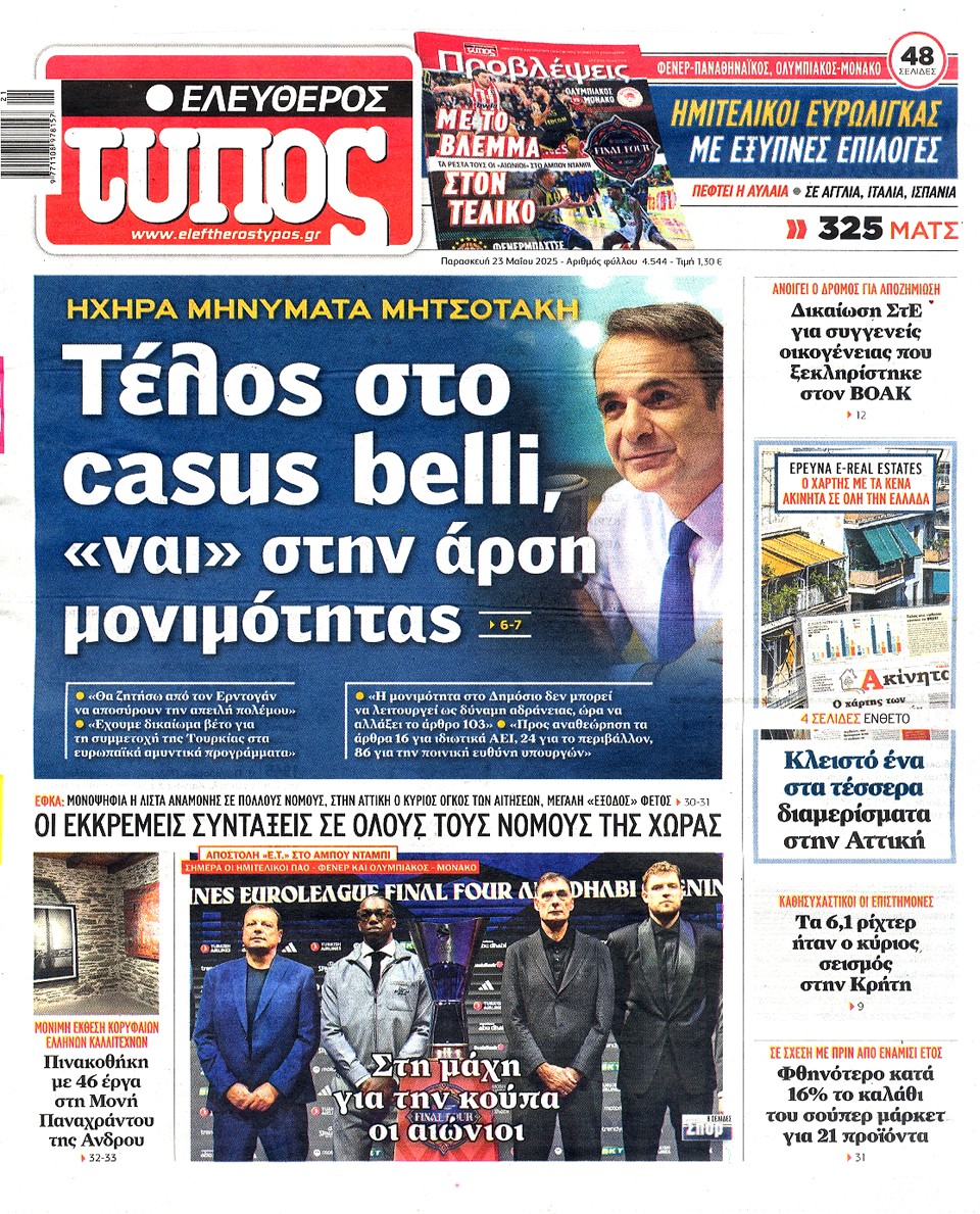 ΕΛΕΥΘΕΡΟΣ ΤΥΠΟΣ - 23 Μαΐου 2025