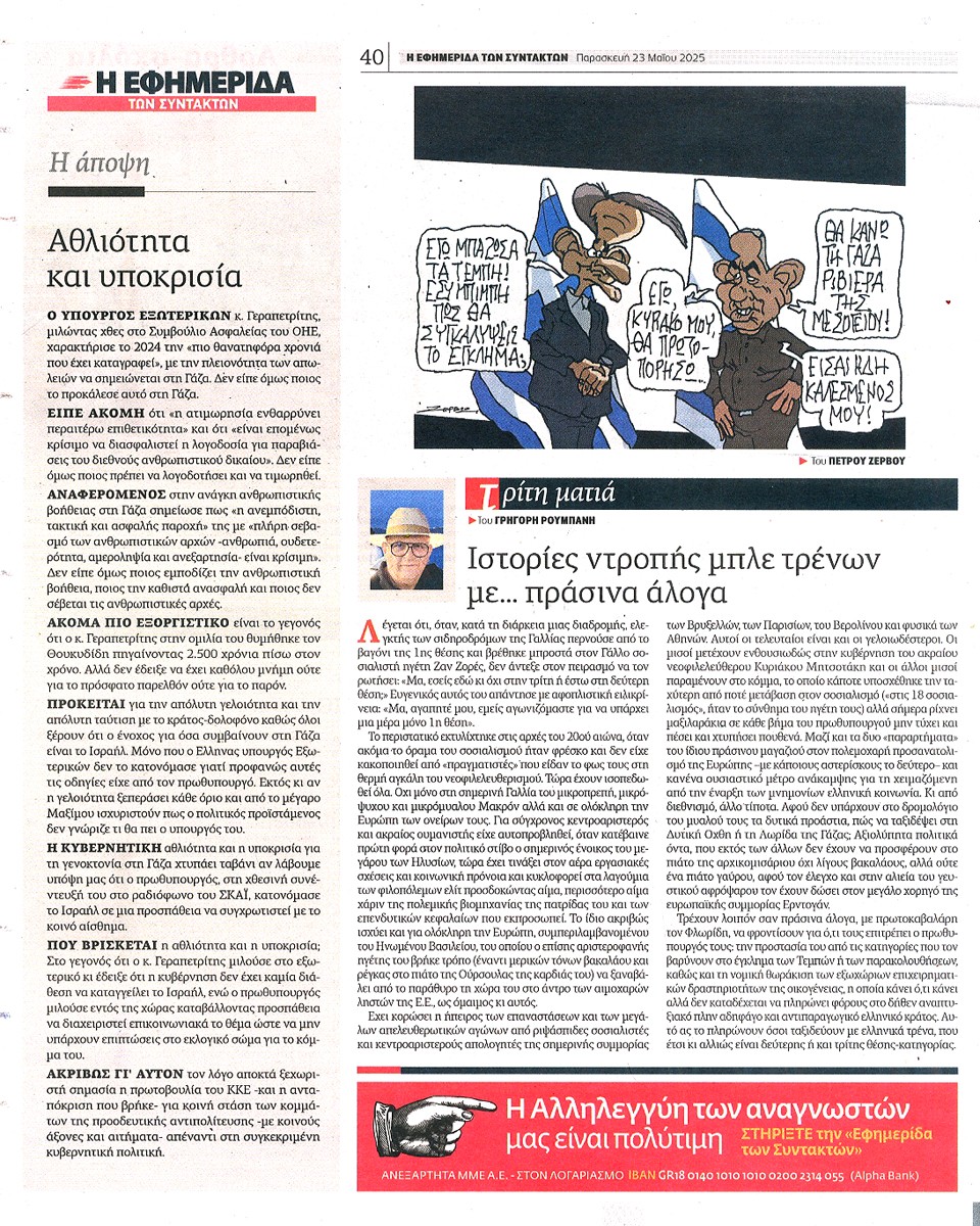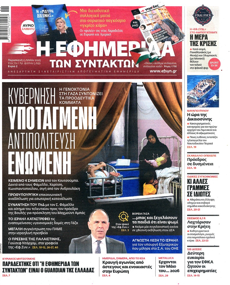 Η ΕΦΗΜΕΡΙΔΑ ΤΩΝ ΣΥΝΤΑΚΤΩΝ - 23 Μαΐου 2025