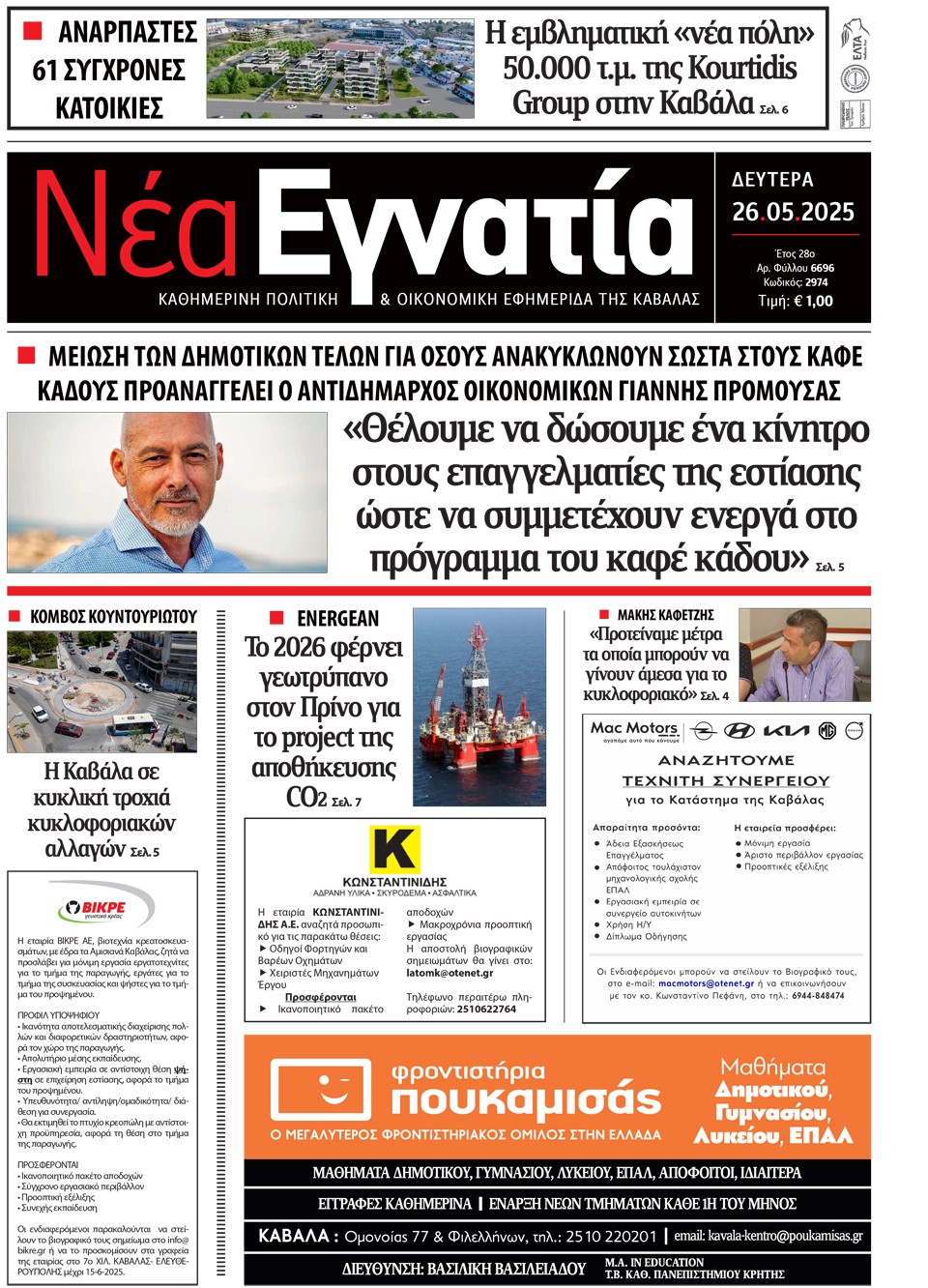 ΝΕΑ ΕΓΝΑΤΙΑ - 26 Μαΐου 2025