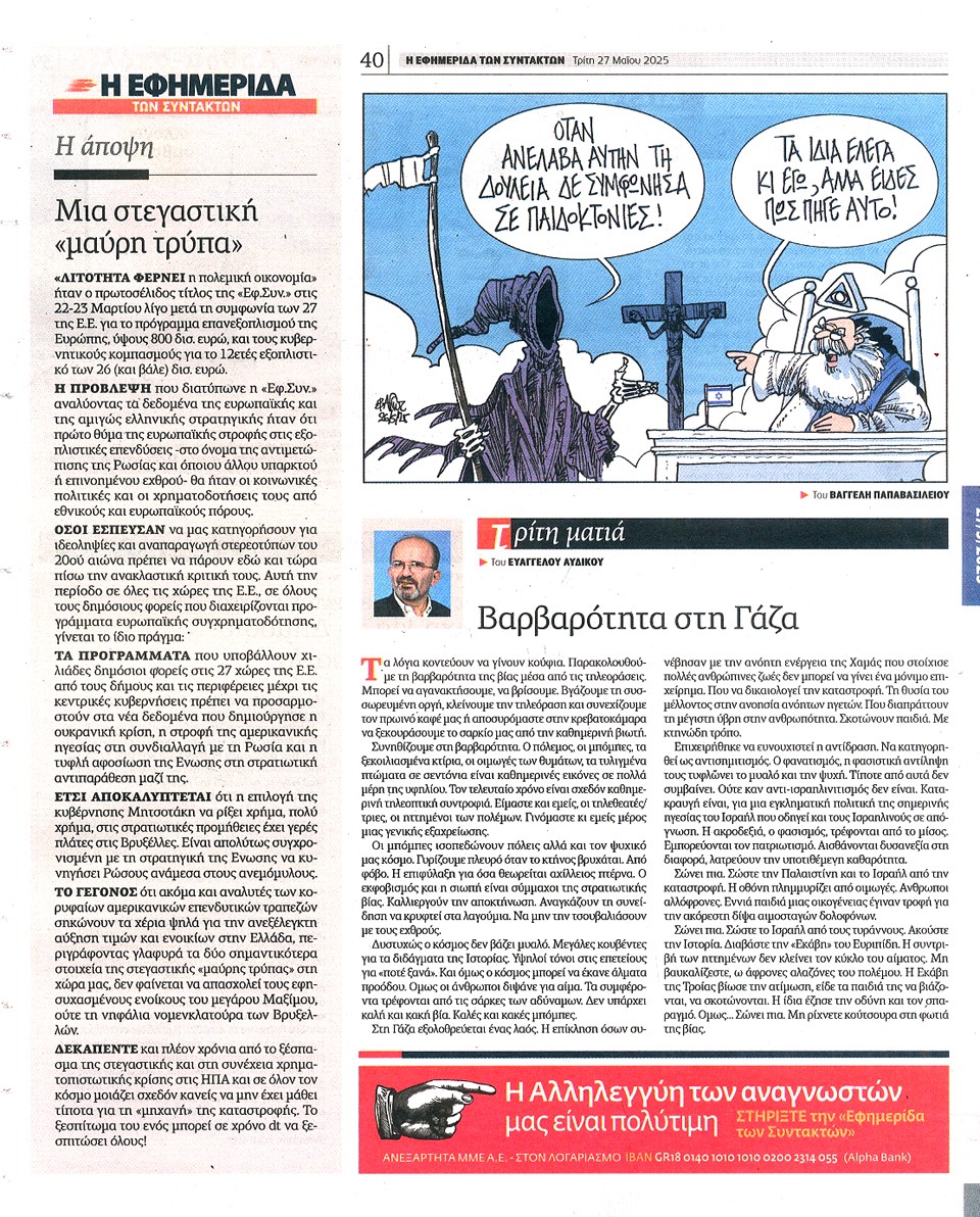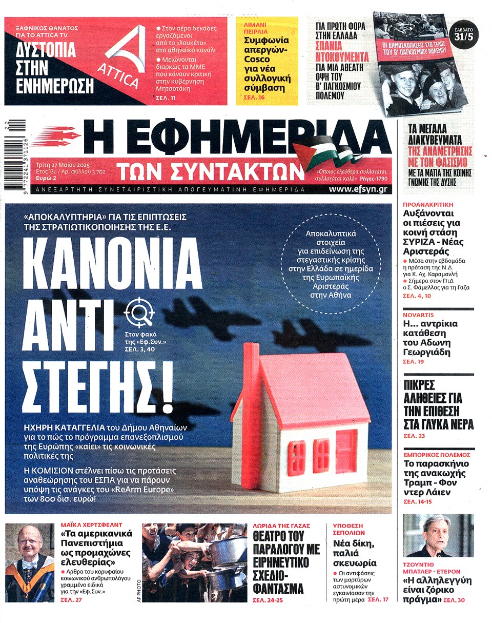 Η ΕΦΗΜΕΡΙΔΑ ΤΩΝ ΣΥΝΤΑΚΤΩΝ - 27 Μαΐου 2025