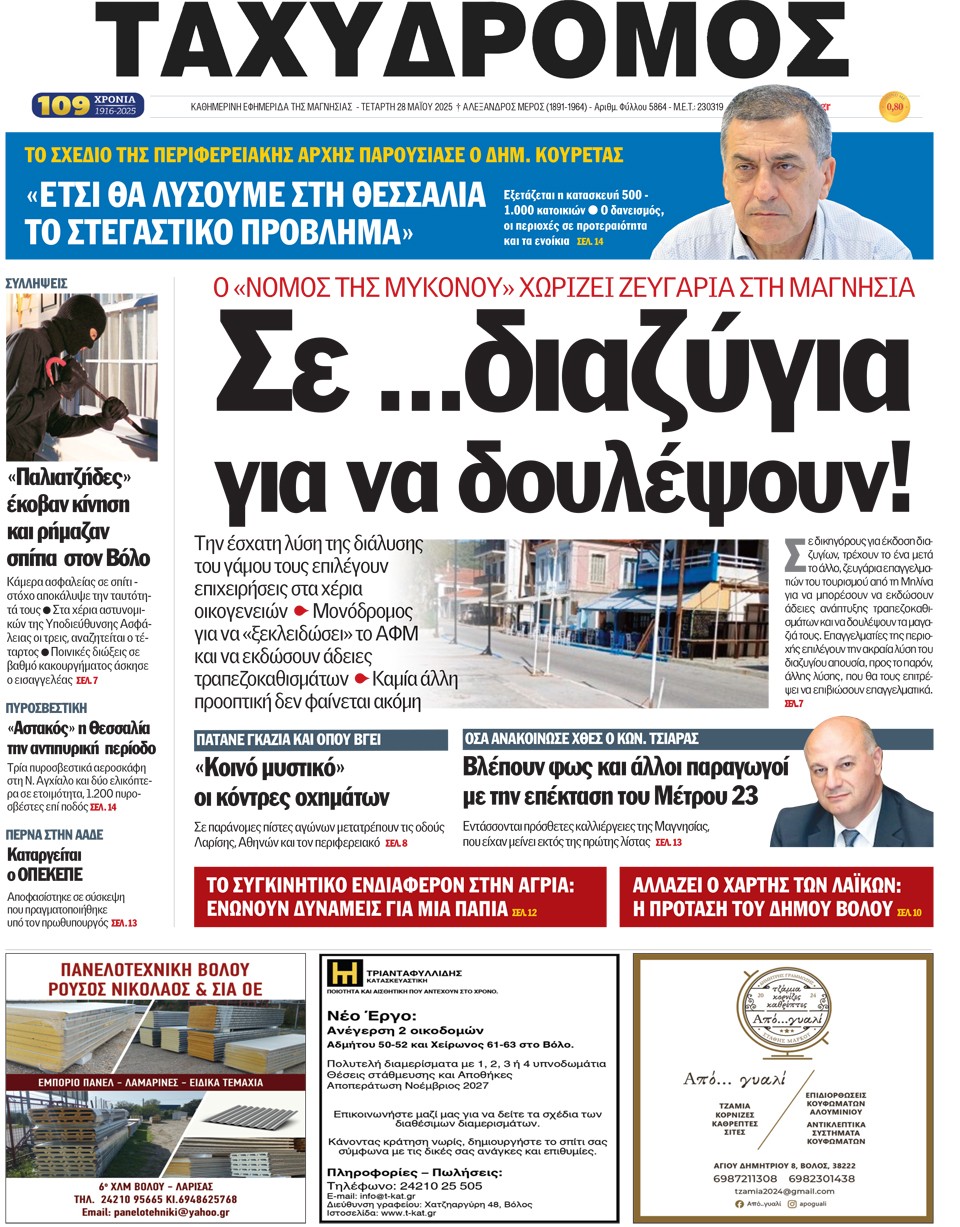ΤΑΧΥΔΡΟΜΟΣ - 28 Μαΐου 2025