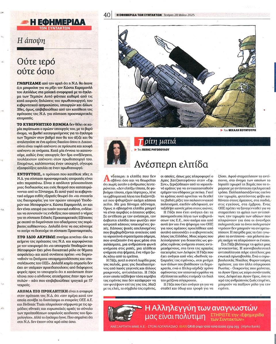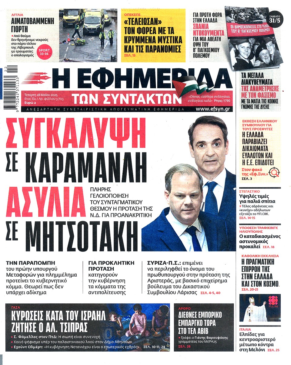 Η ΕΦΗΜΕΡΙΔΑ ΤΩΝ ΣΥΝΤΑΚΤΩΝ - 28 Μαΐου 2025