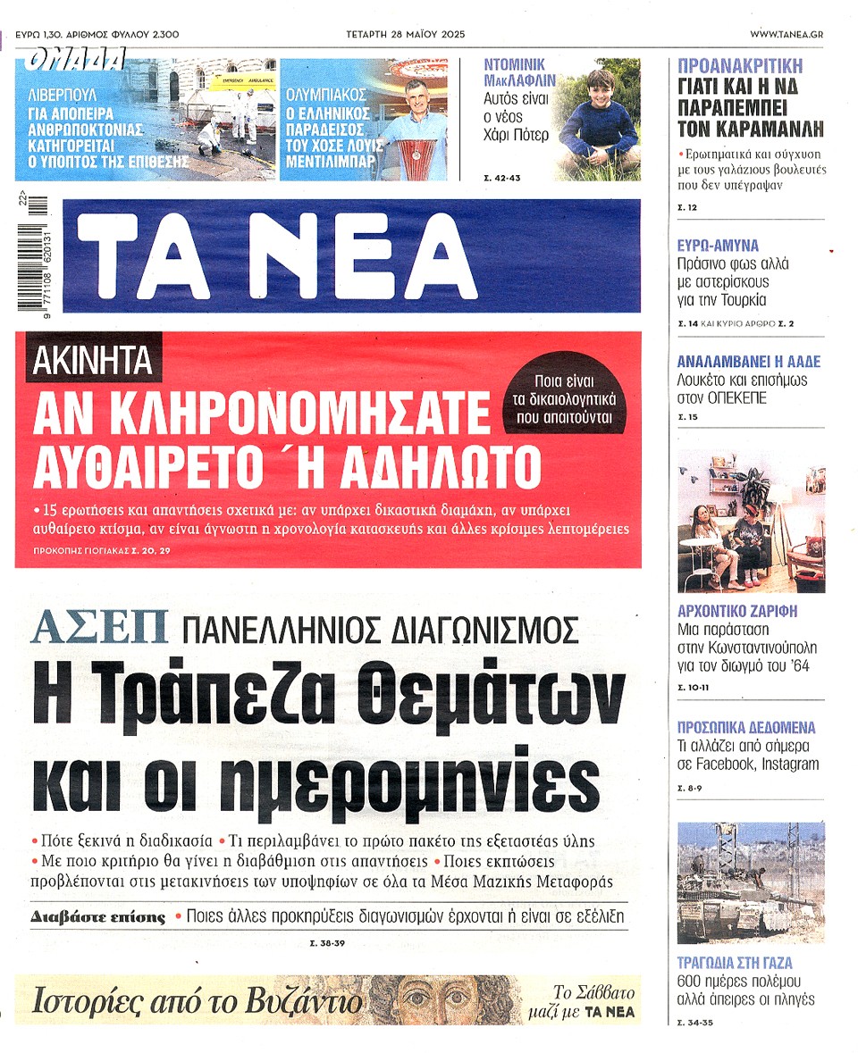 ΤΑ ΝΕΑ - 28 Μαΐου 2025