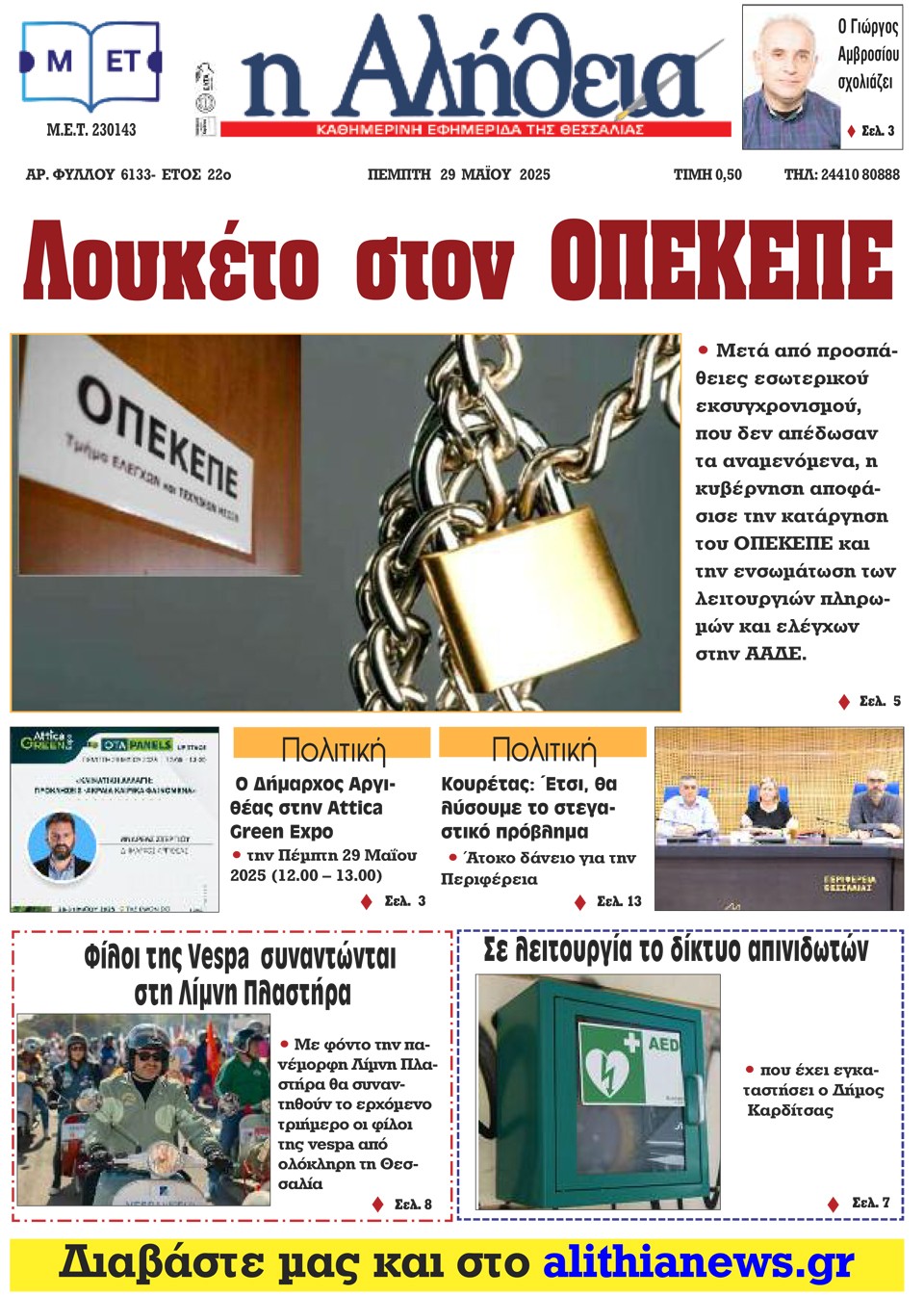 Η ΑΛΗΘΕΙΑ - 29 Μαΐου 2025