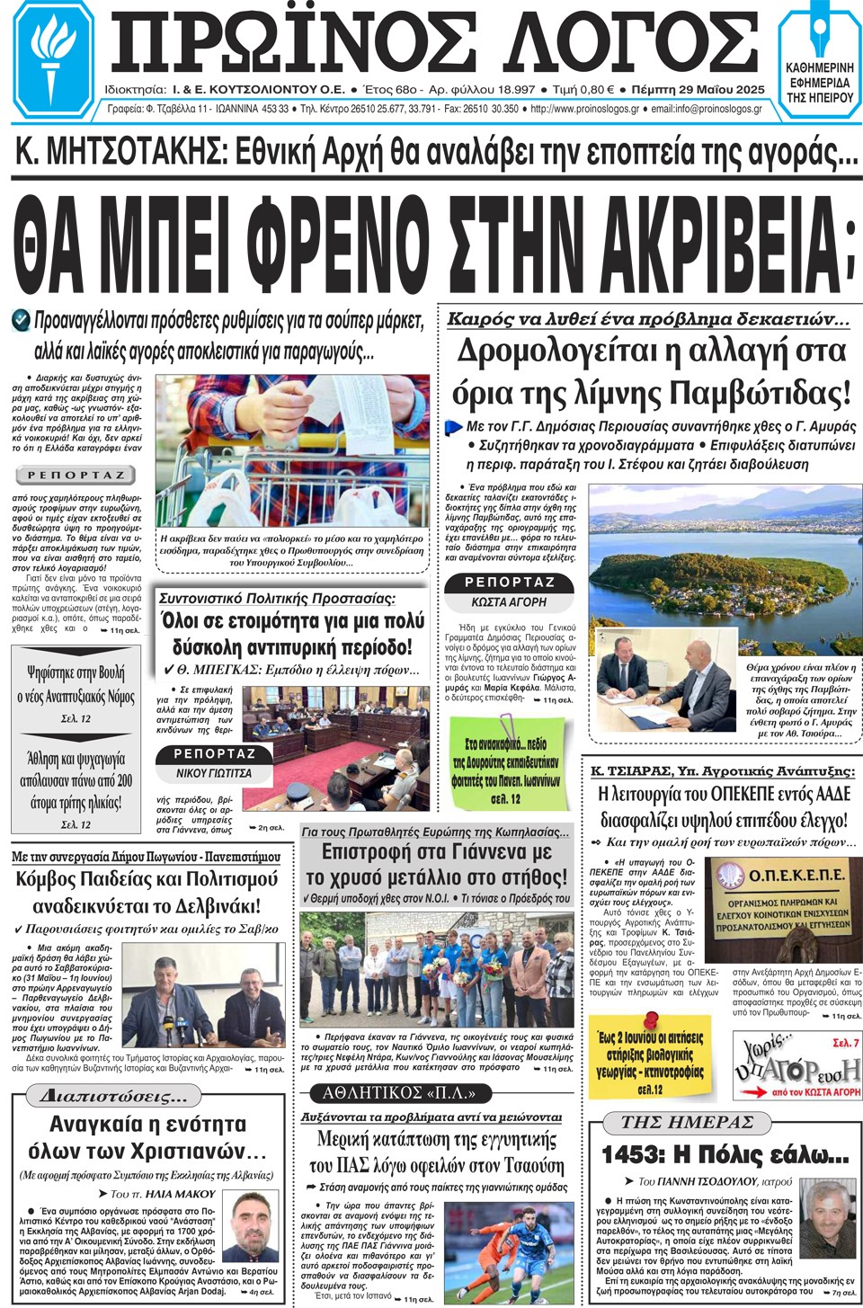 ΠΡΩΙΝΟΣ ΛΟΓΟΣ - 29 Μαΐου 2025
