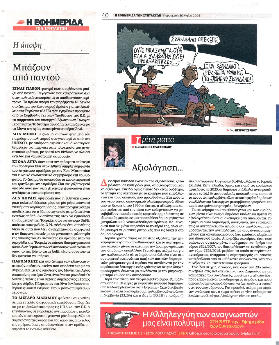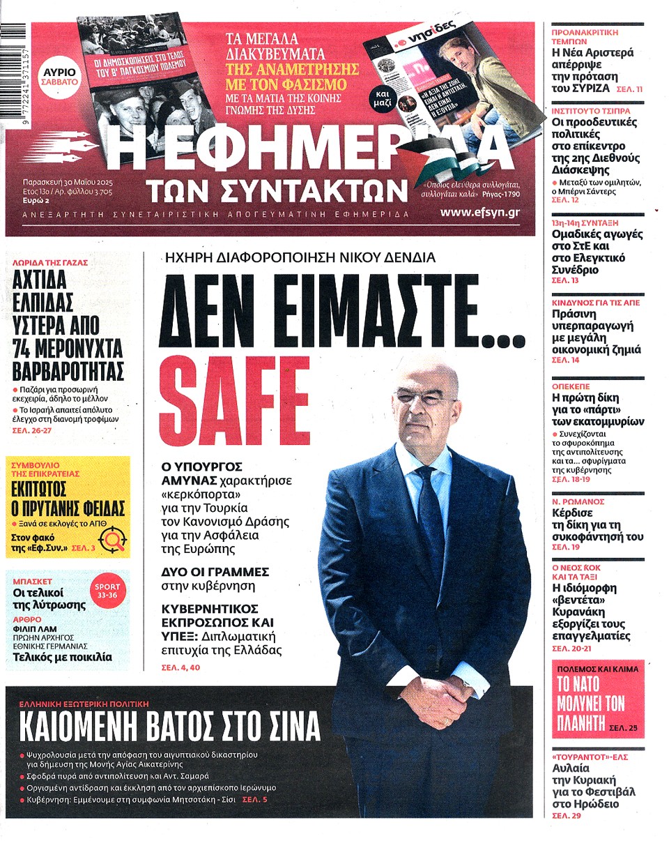 Η ΕΦΗΜΕΡΙΔΑ ΤΩΝ ΣΥΝΤΑΚΤΩΝ - 30 Μαΐου 2025