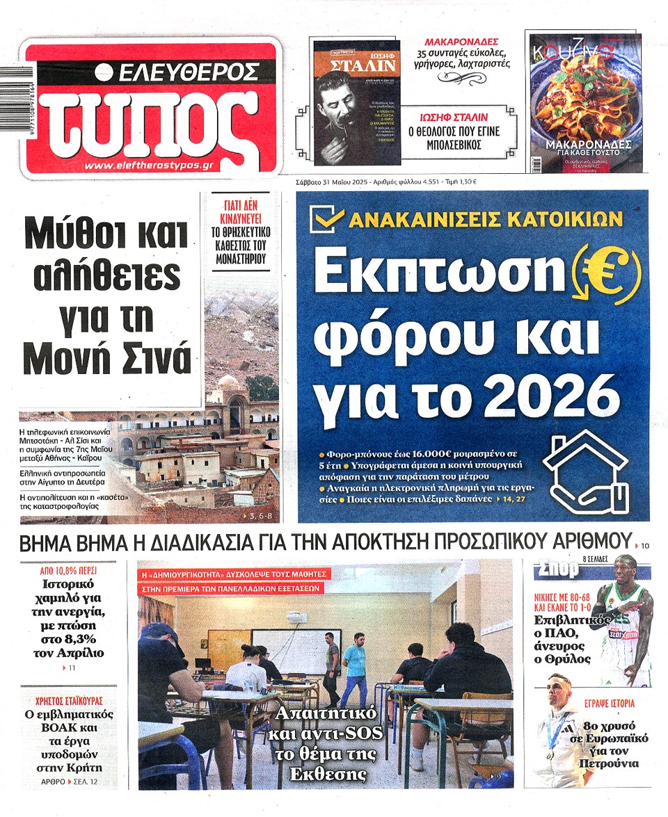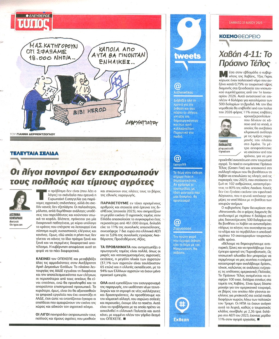 ΕΛΕΥΘΕΡΟΣ ΤΥΠΟΣ - 31 Μαΐου 2025