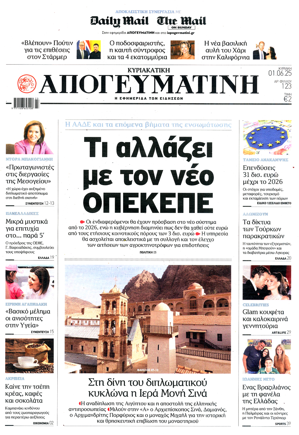 ΑΠΟΓΕΥΜΑΤΙΝΗ ΤΗΣ ΚΥΡΙΑΚΗΣ - 01 Ιουνίου 2025
