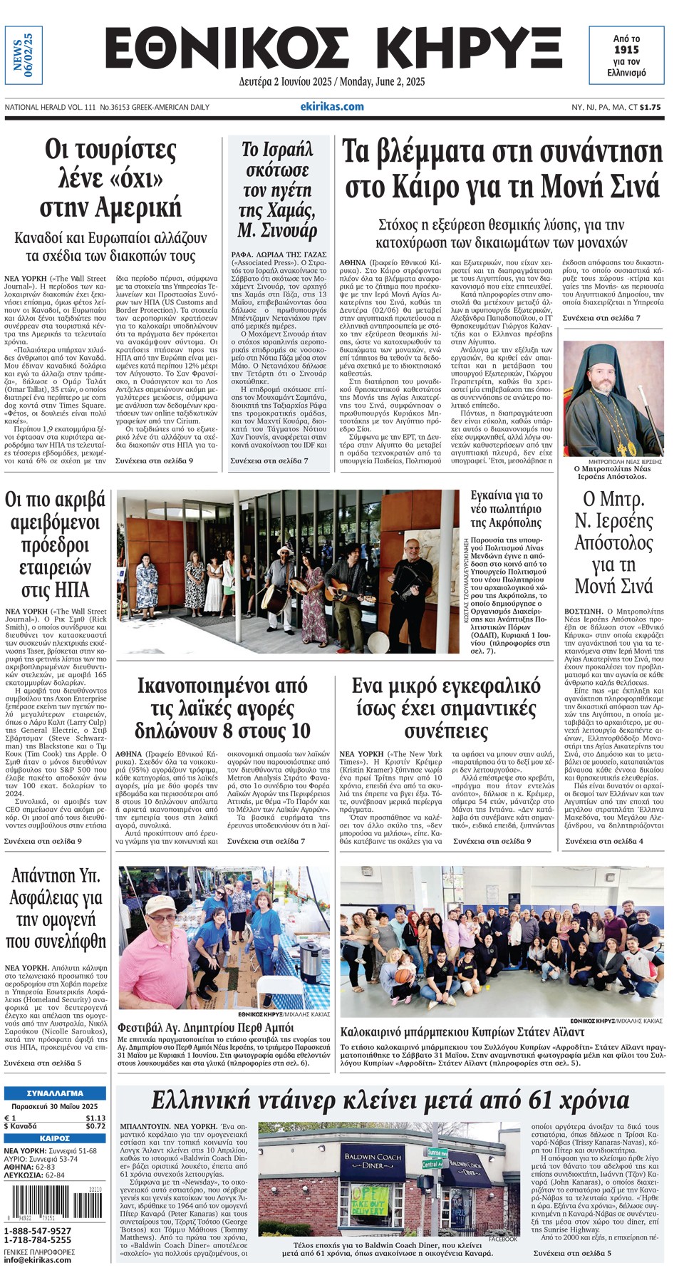 ΕΘΝΙΚΟΣ ΚΗΡΥΞ - 02 Ιουνίου 2025