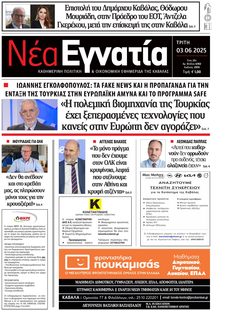 ΝΕΑ ΕΓΝΑΤΙΑ - 03 Ιουνίου 2025