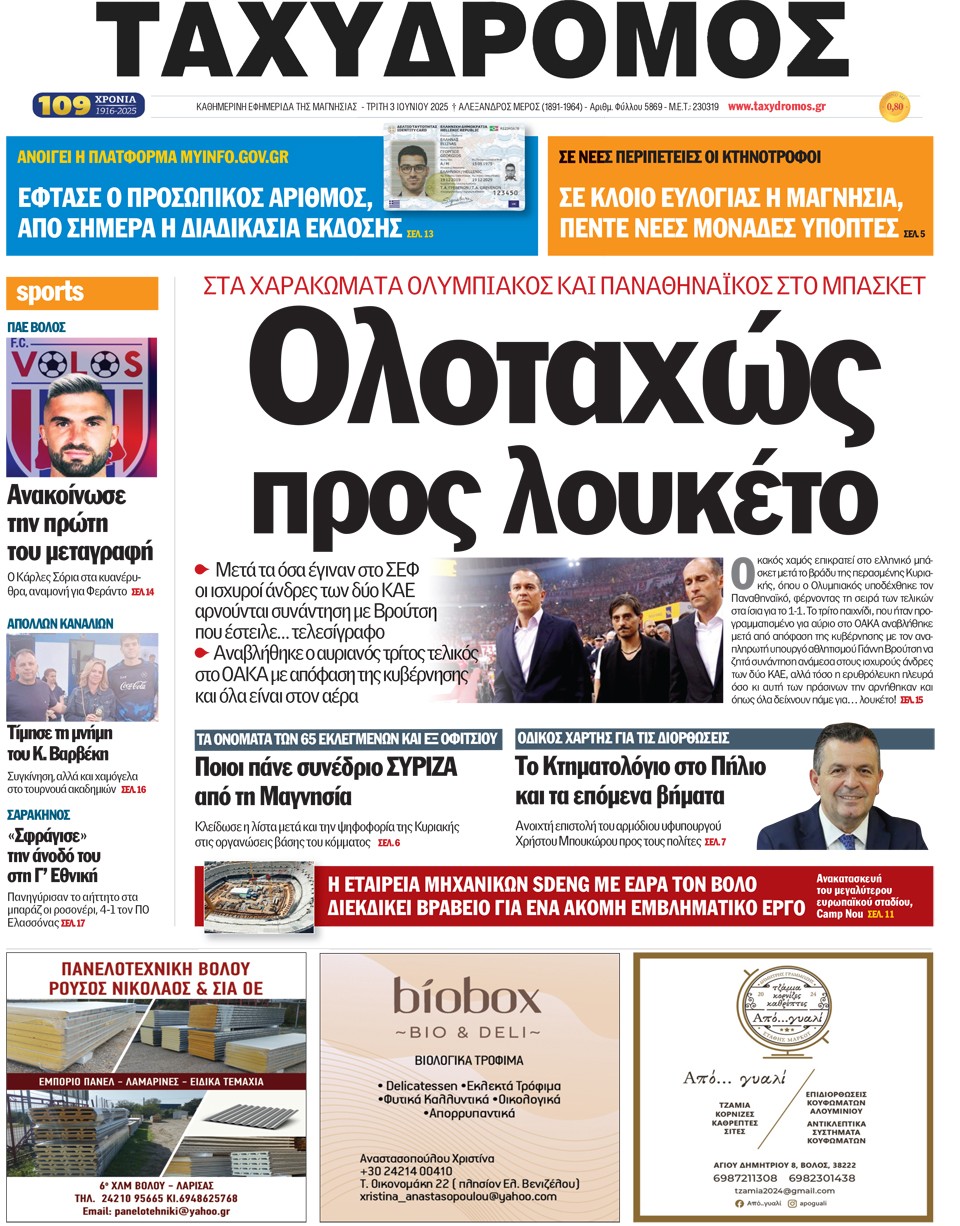 ΤΑΧΥΔΡΟΜΟΣ - 03 Ιουνίου 2025