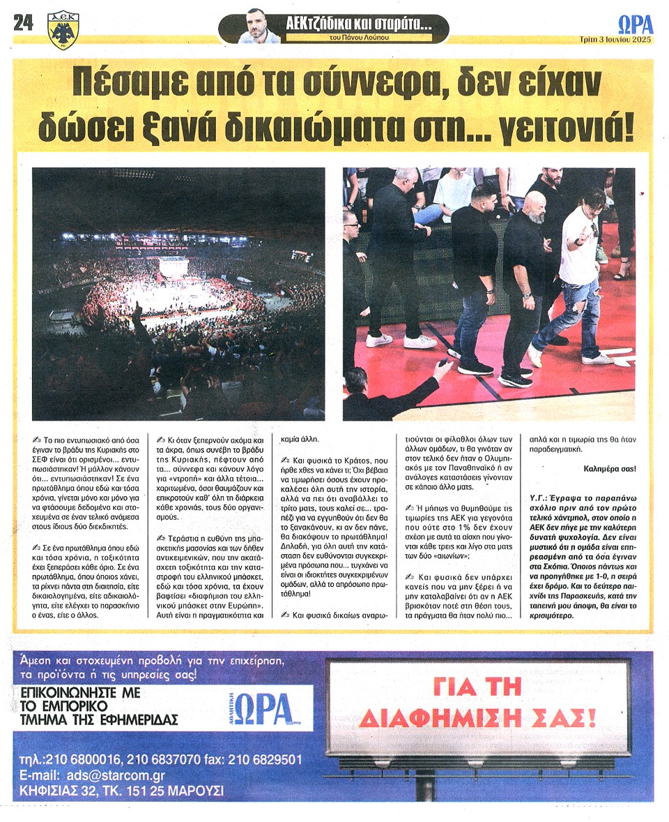 ΑΘΛΗΤΙΚΗ ΩΡΑ ΤΩΝ ΣΠΟΡ - 03 Ιουνίου 2025