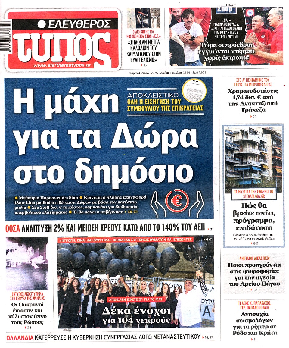 ΕΛΕΥΘΕΡΟΣ ΤΥΠΟΣ - 04 Ιουνίου 2025