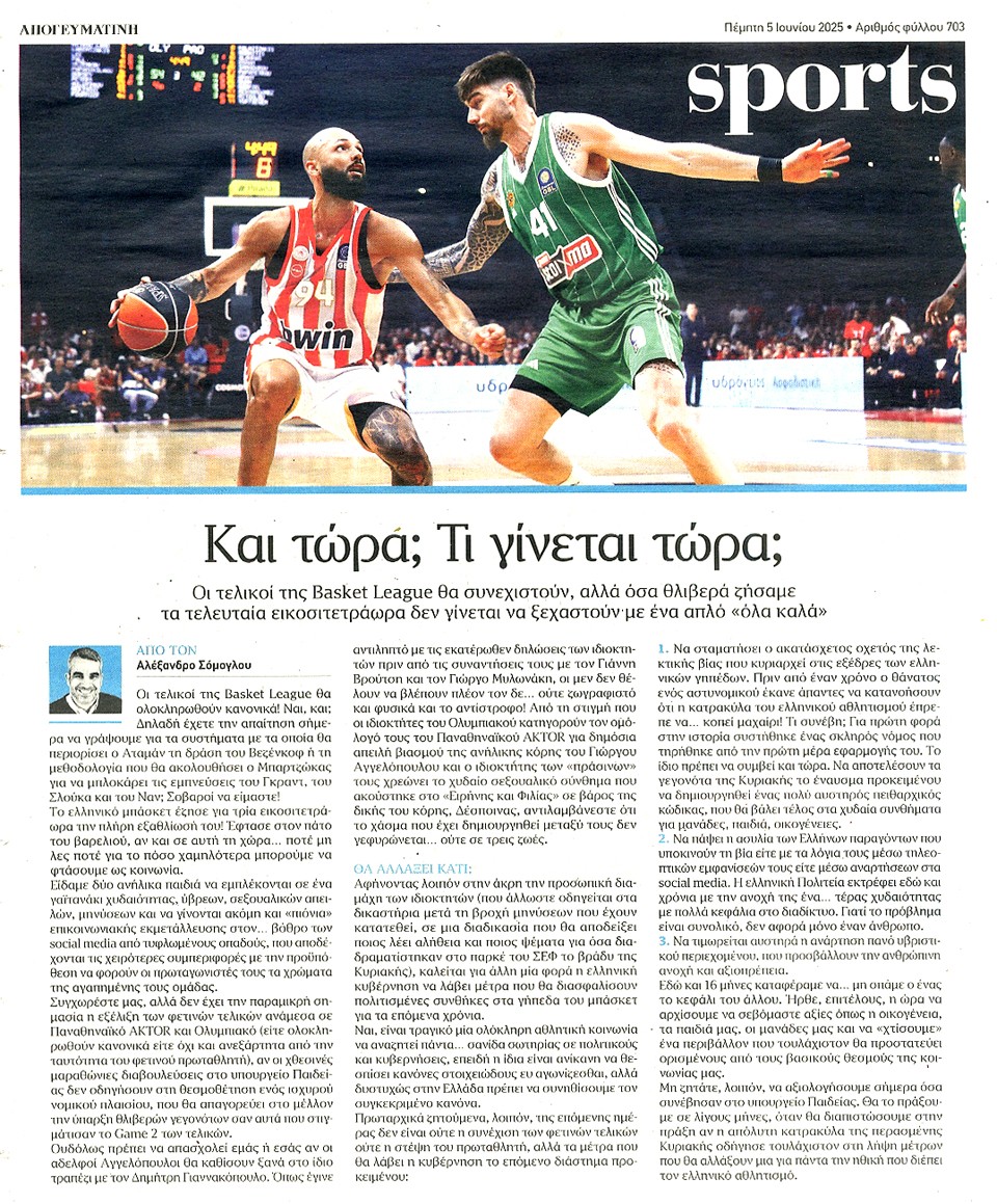 ΑΠΟΓΕΥΜΑΤΙΝΗ - 05 Ιουνίου 2025