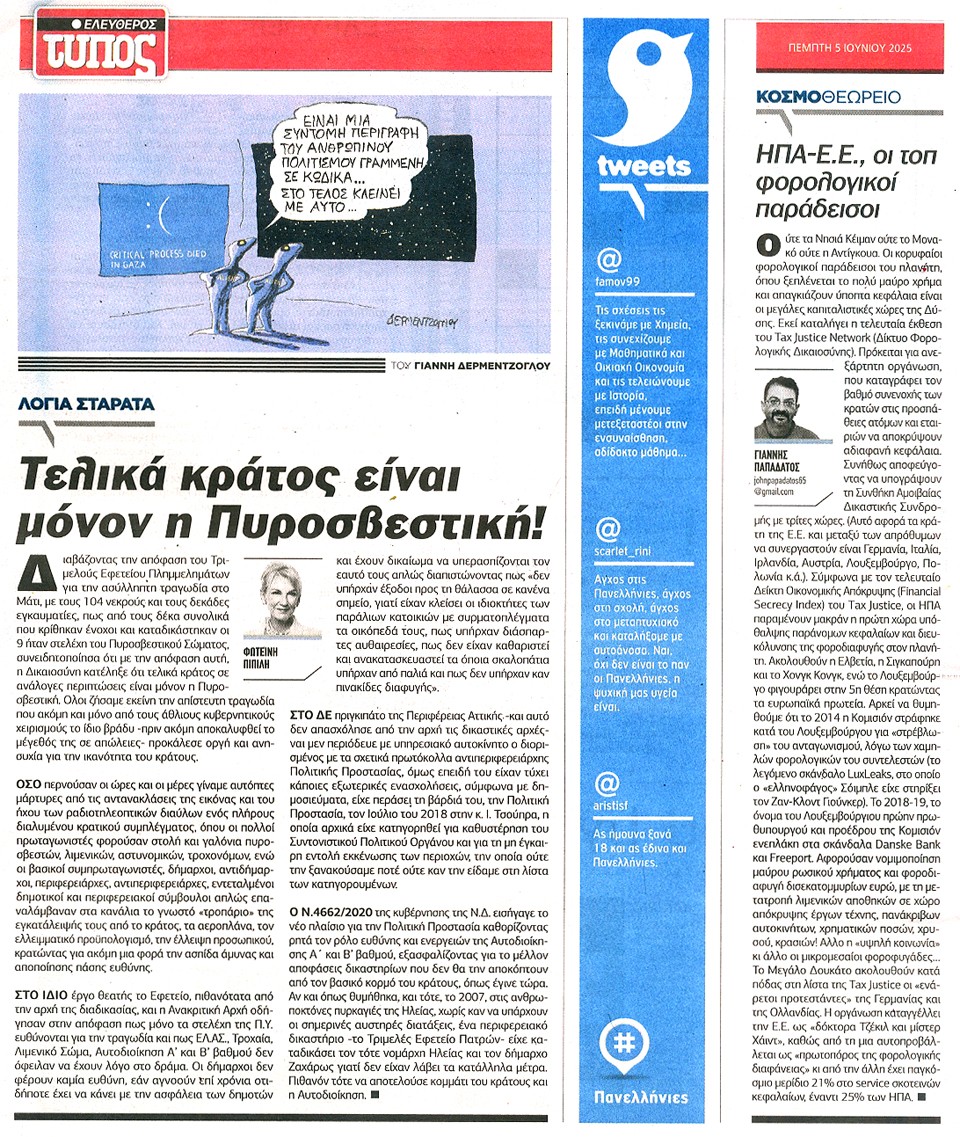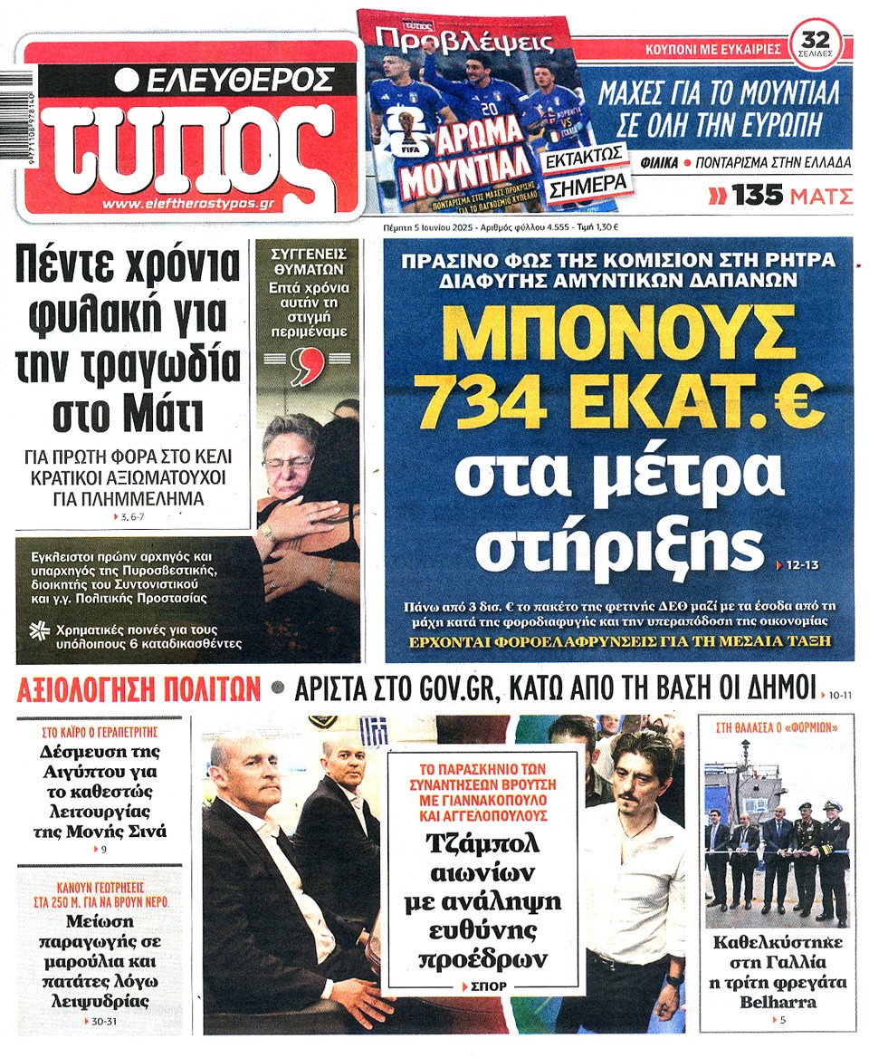 ΕΛΕΥΘΕΡΟΣ ΤΥΠΟΣ - 05 Ιουνίου 2025