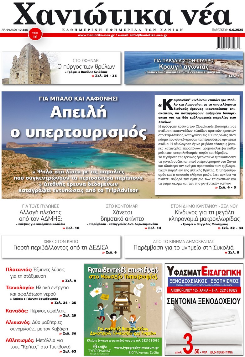 ΧΑΝΙΩΤΙΚΑ ΝΕΑ - 06 Ιουνίου 2025
