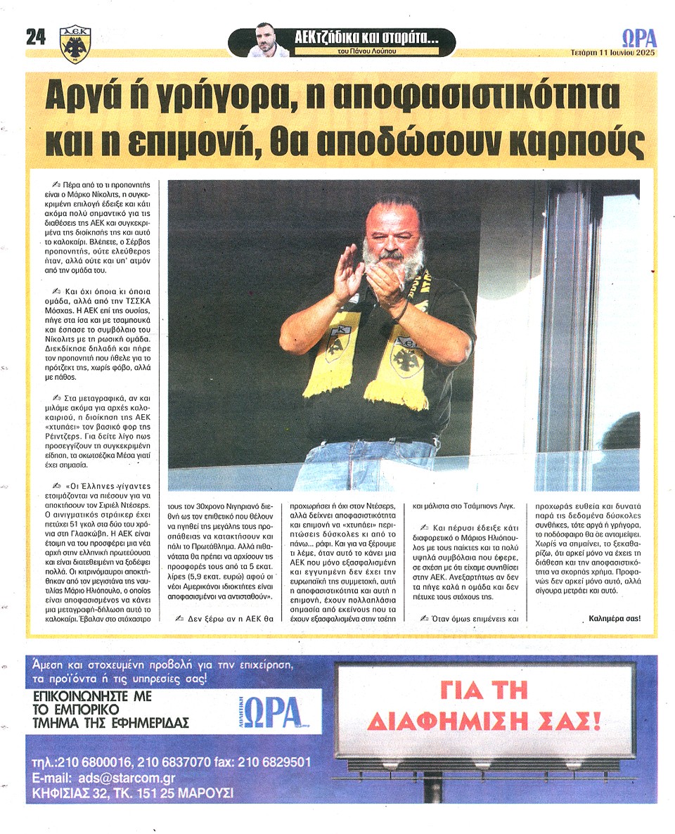 ΑΘΛΗΤΙΚΗ ΩΡΑ ΤΩΝ ΣΠΟΡ - 11 Ιουνίου 2025