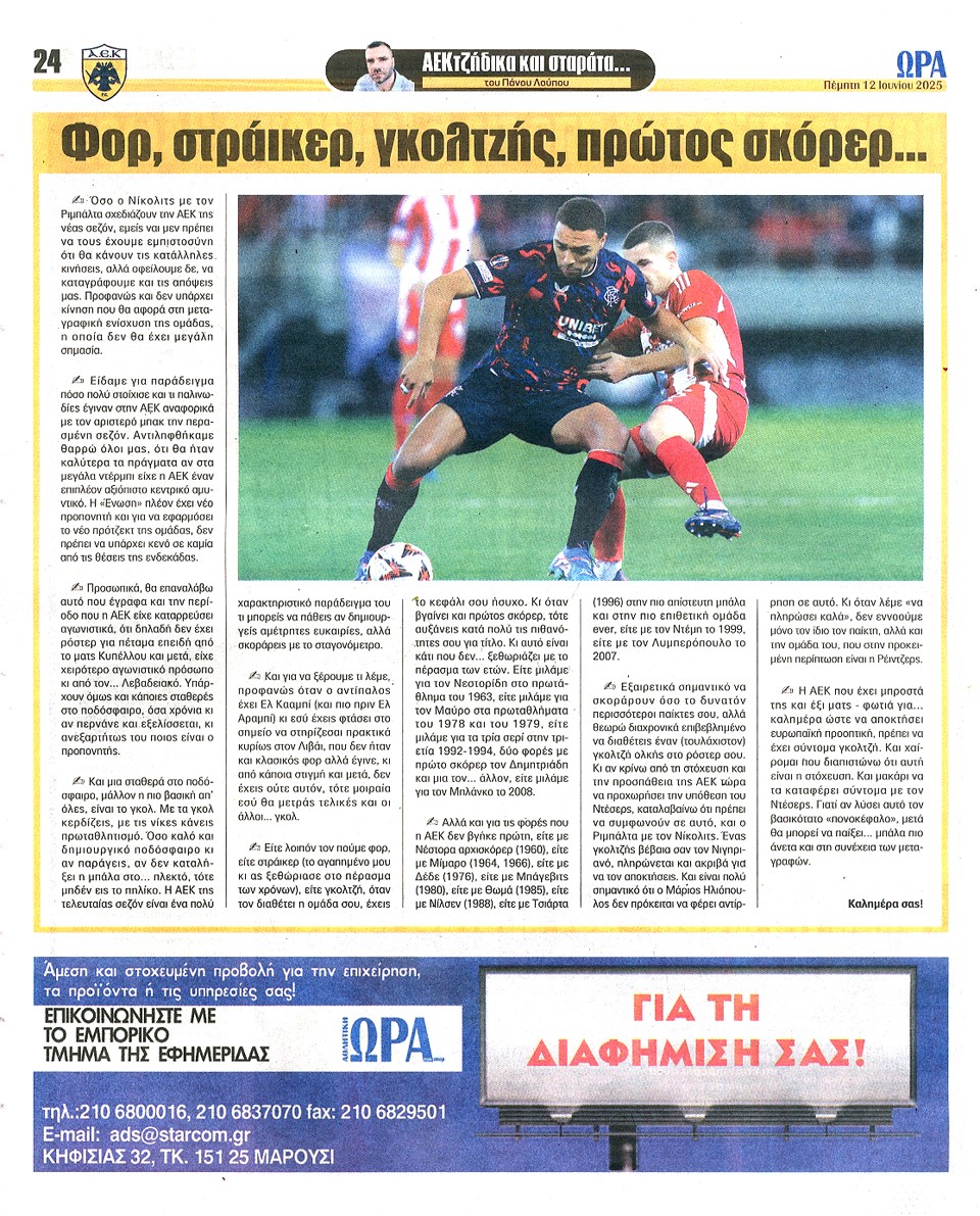 ΑΘΛΗΤΙΚΗ ΩΡΑ ΤΩΝ ΣΠΟΡ - 12 Ιουνίου 2025