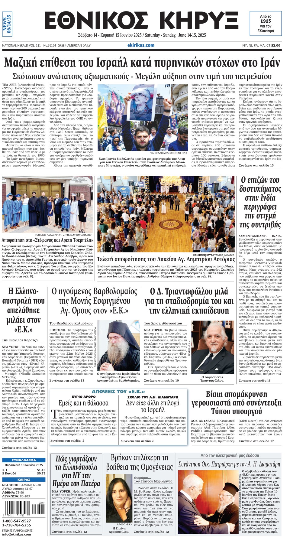 ΕΘΝΙΚΟΣ ΚΗΡΥΞ - 14 Ιουνίου 2025