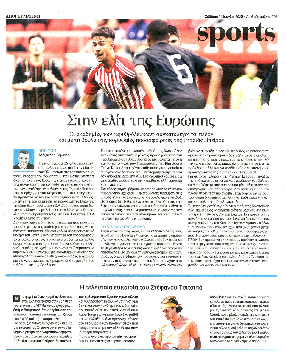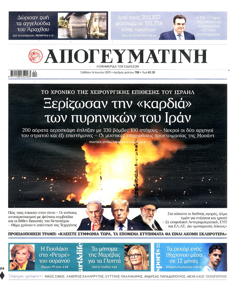 ΑΠΟΓΕΥΜΑΤΙΝΗ - 14 Ιουνίου 2025
