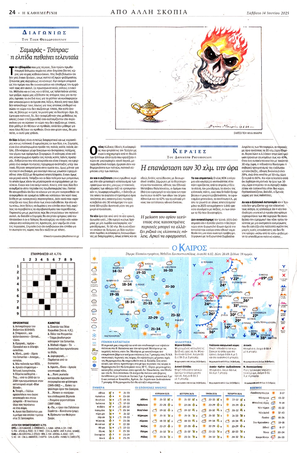 ΚΑΘΗΜΕΡΙΝΗ - 14 Ιουνίου 2025