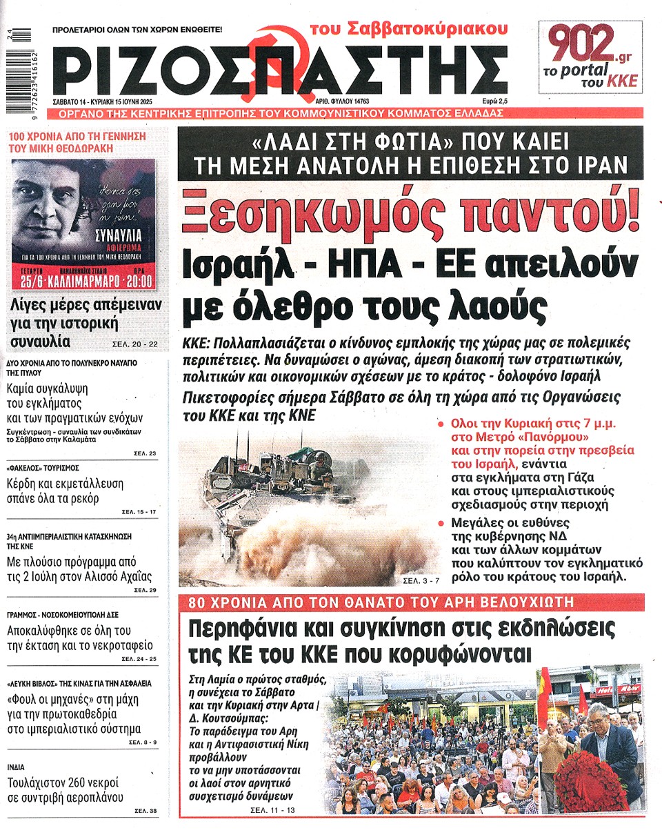 ΡΙΖΟΣΠΑΣΤΗΣ ΤΗΣ ΚΥΡΙΑΚΗΣ - 14 Ιουνίου 2025