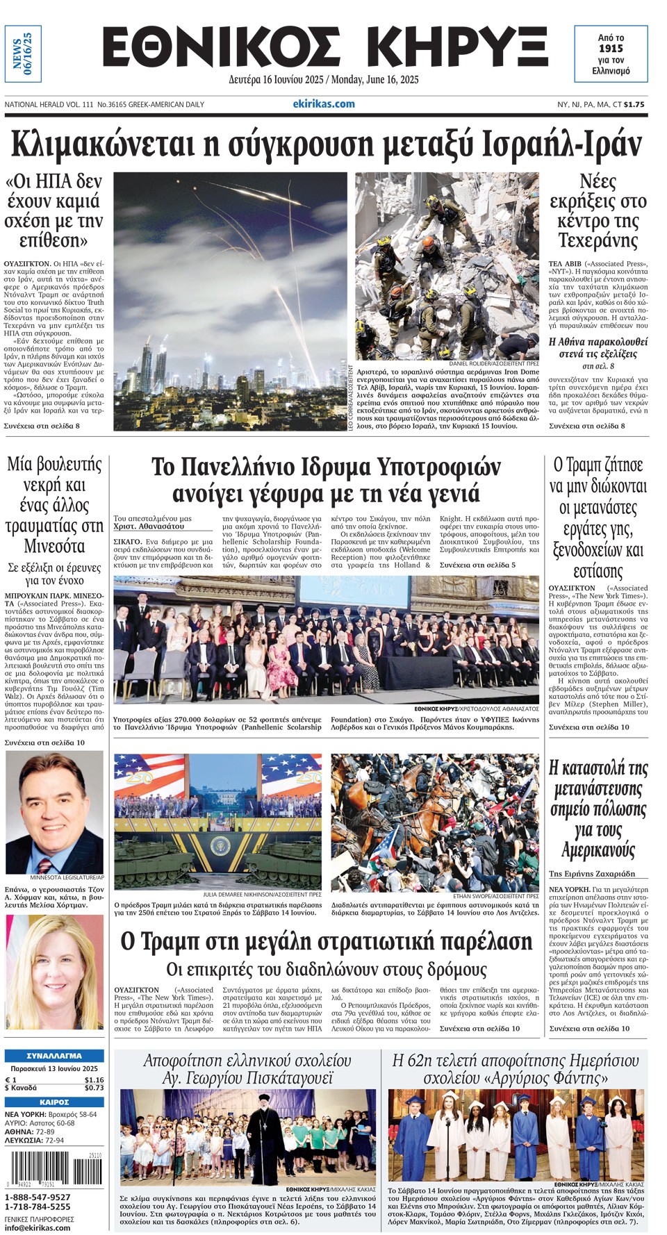ΕΘΝΙΚΟΣ ΚΗΡΥΞ - 16 Ιουνίου 2025