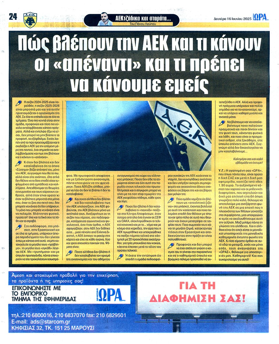 ΑΘΛΗΤΙΚΗ ΩΡΑ ΤΩΝ ΣΠΟΡ - 16 Ιουνίου 2025