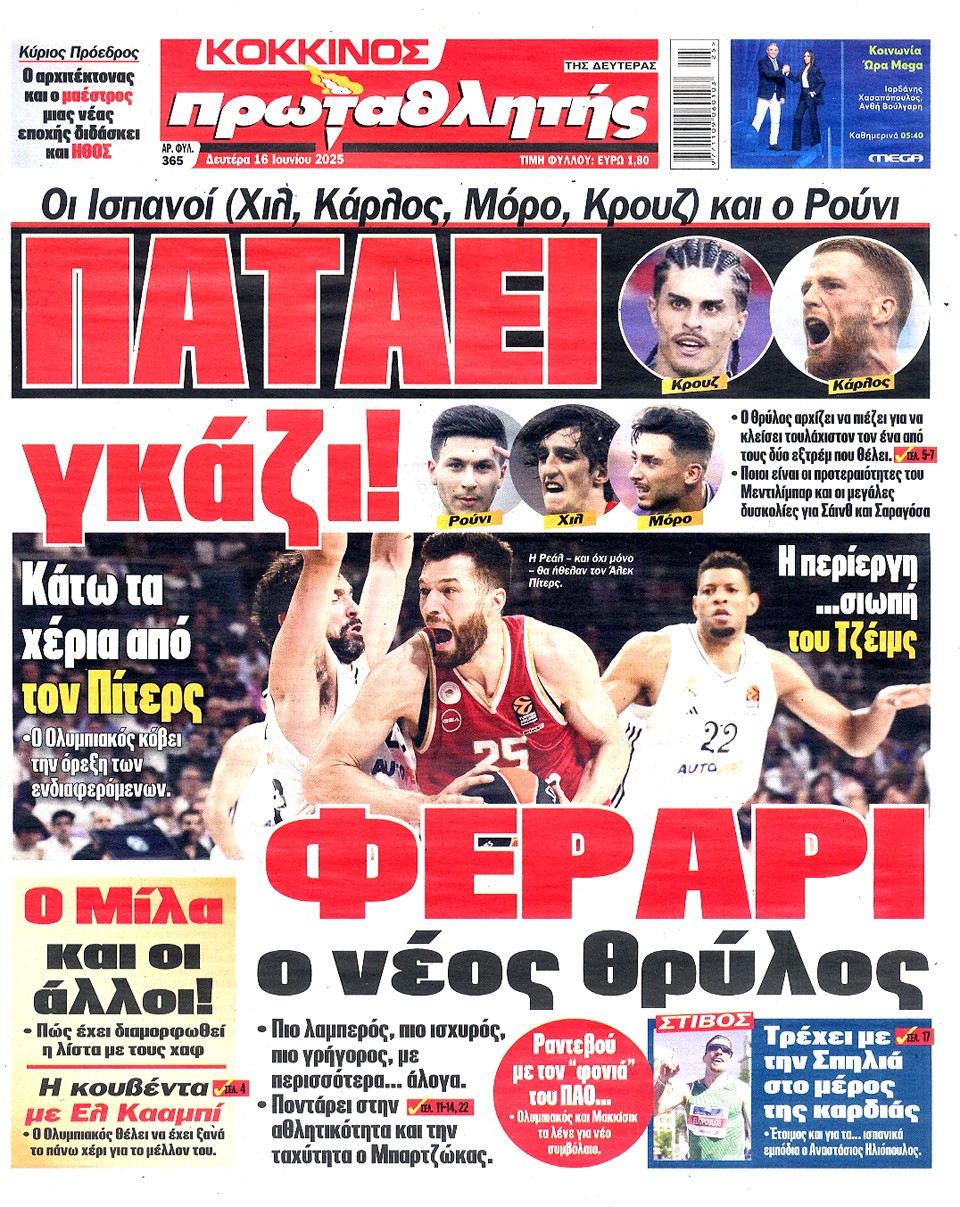 ΠΡΩΤΑΘΛΗΤΗΣ - 16 Ιουνίου 2025