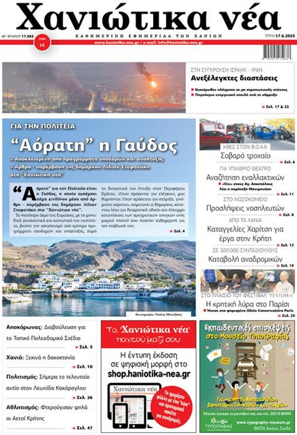 ΧΑΝΙΩΤΙΚΑ ΝΕΑ - 17 Ιουνίου 2025