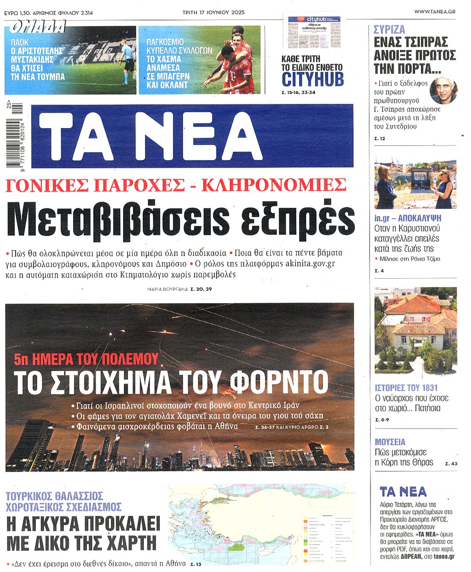ΤΑ ΝΕΑ - 17 Ιουνίου 2025