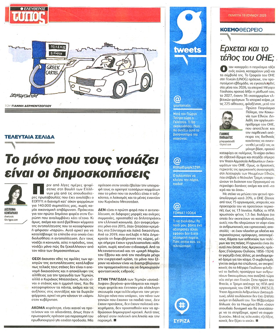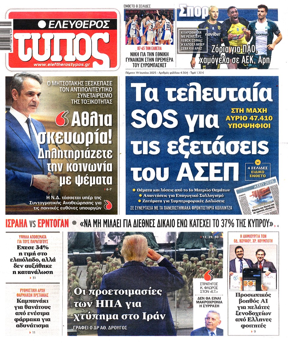 ΕΛΕΥΘΕΡΟΣ ΤΥΠΟΣ - 19 Ιουνίου 2025