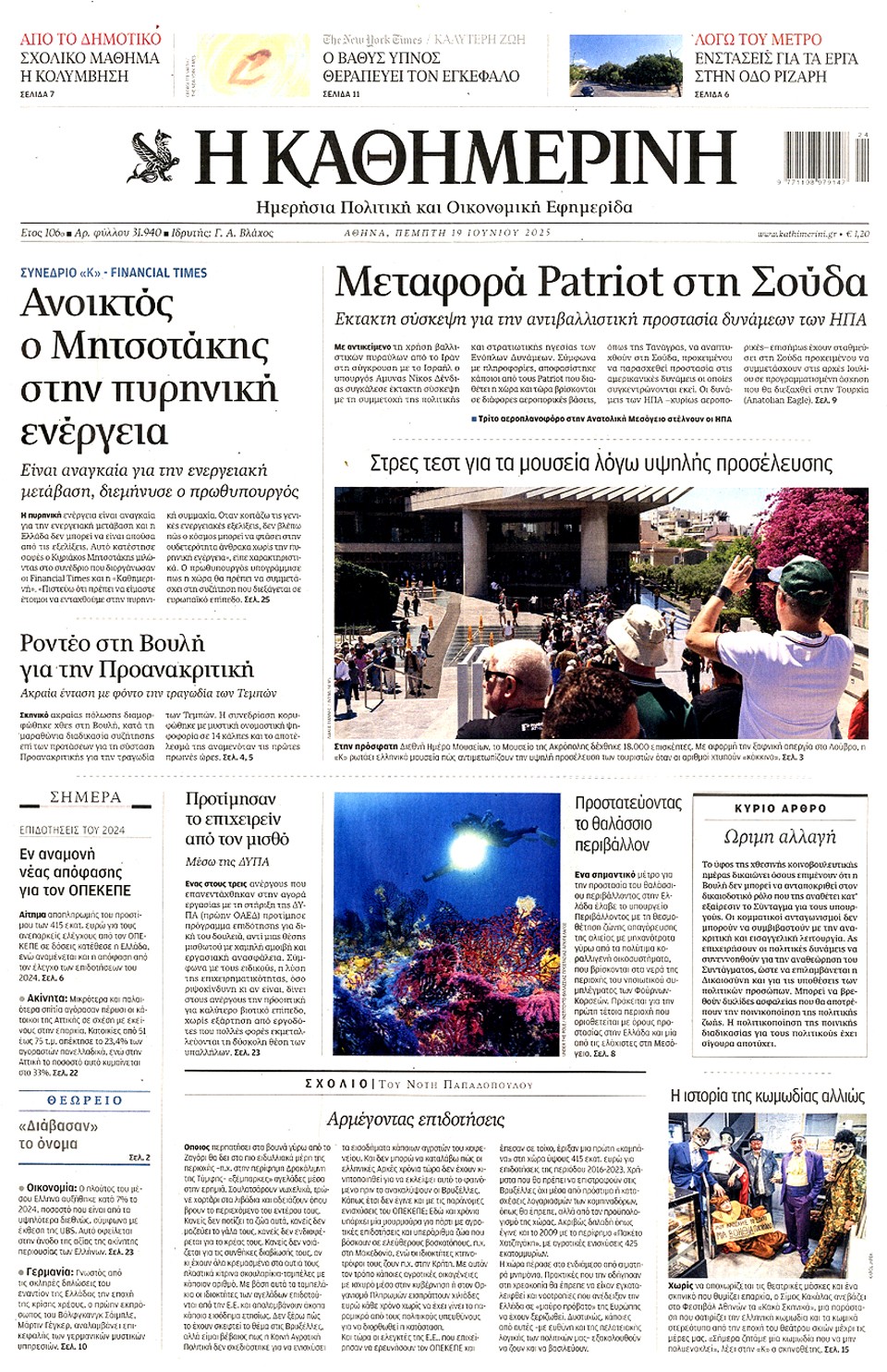 ΚΑΘΗΜΕΡΙΝΗ - 19 Ιουνίου 2025
