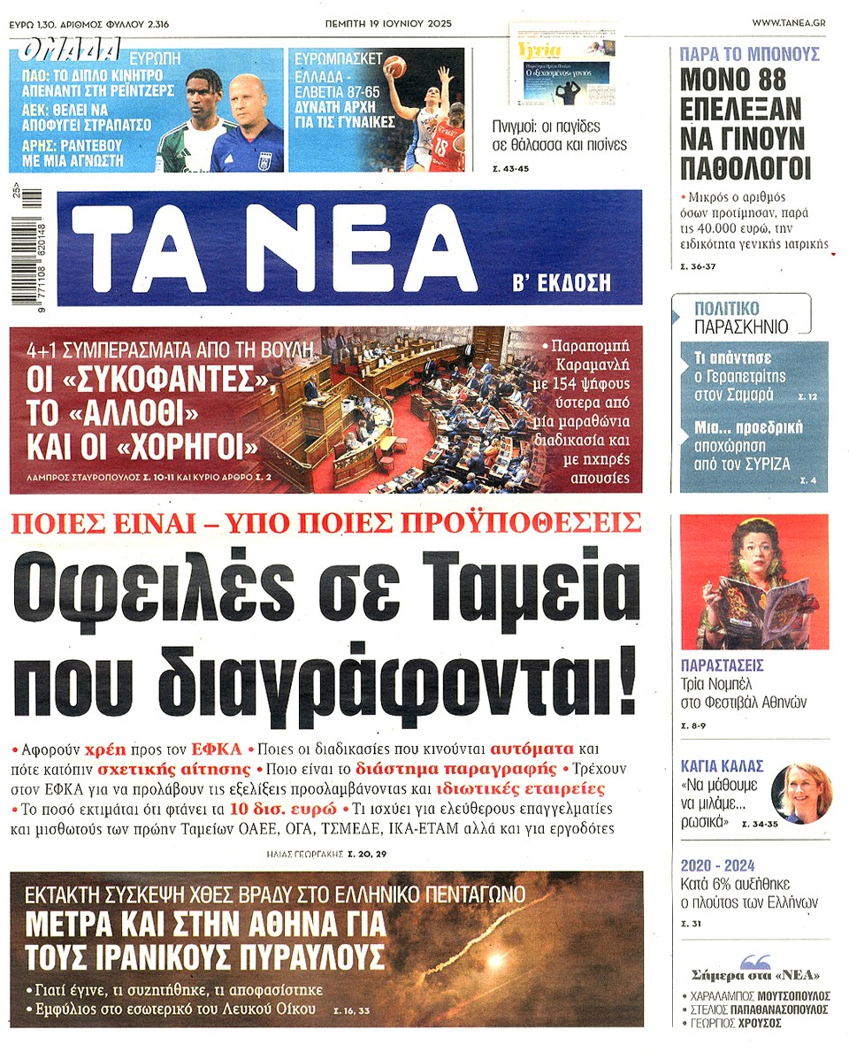ΤΑ ΝΕΑ - 19 Ιουνίου 2025