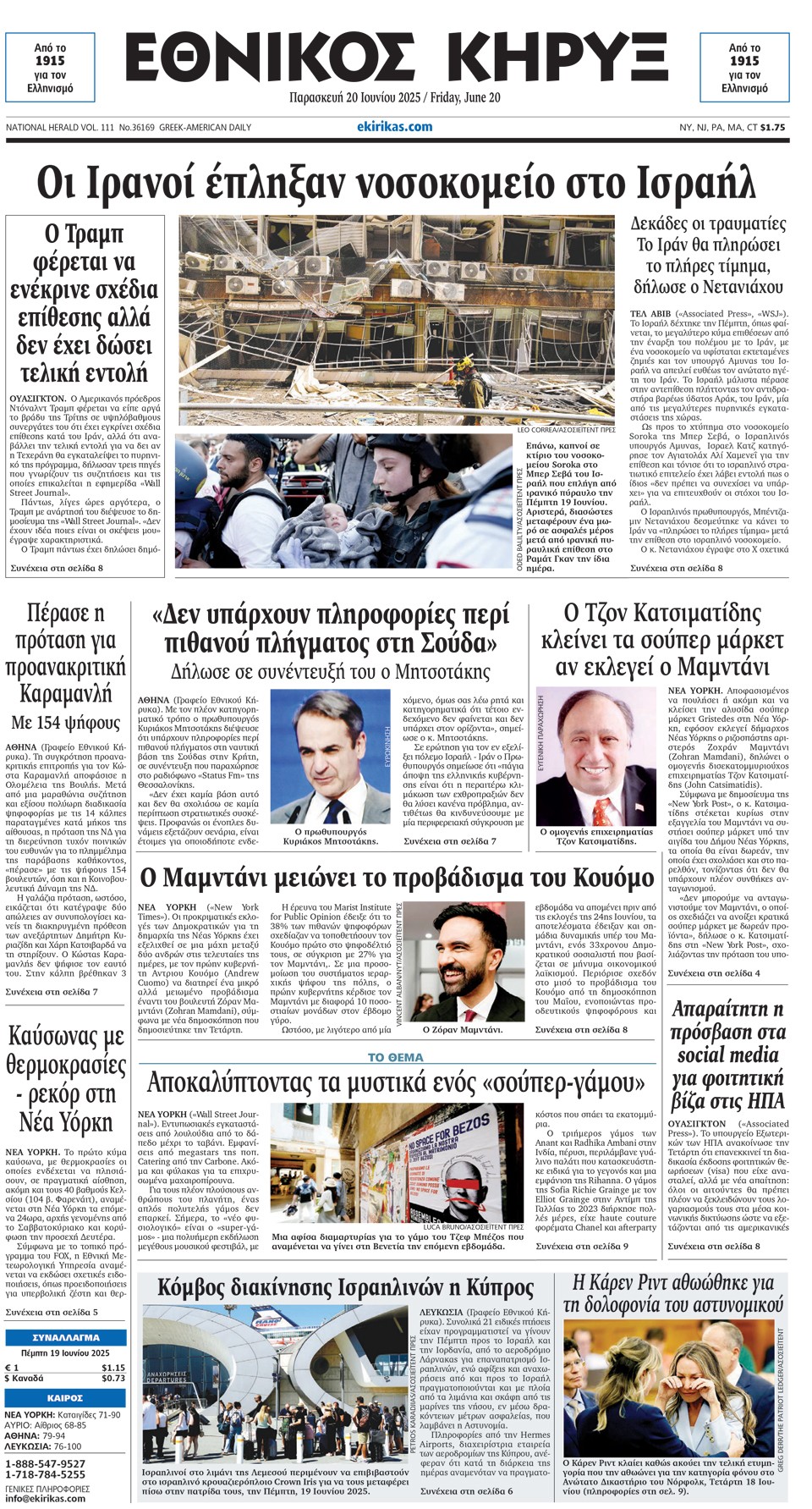 ΕΘΝΙΚΟΣ ΚΗΡΥΞ - 20 Ιουνίου 2025