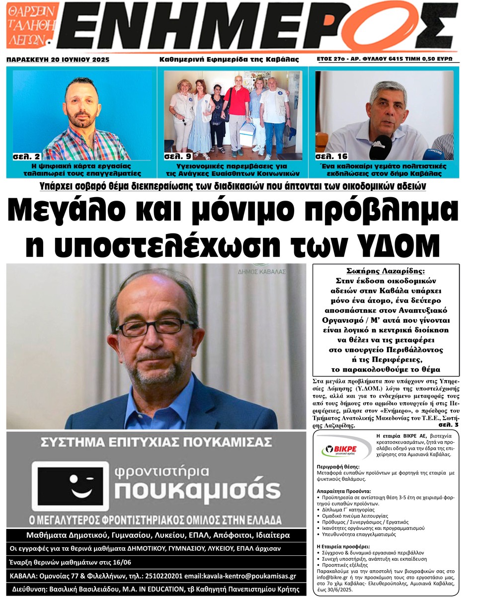 ΕΝΗΜΕΡΟΣ - 20 Ιουνίου 2025