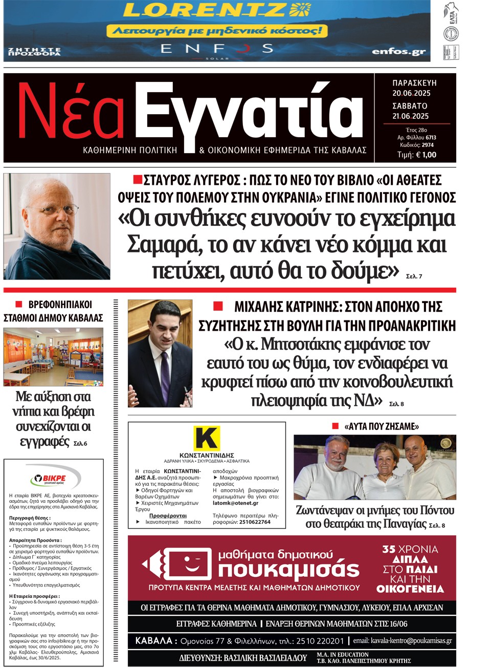 ΝΕΑ ΕΓΝΑΤΙΑ - 20 Ιουνίου 2025
