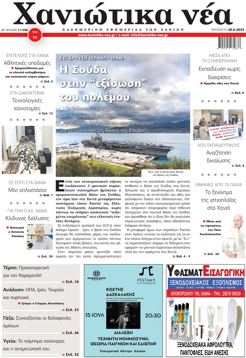 ΧΑΝΙΩΤΙΚΑ ΝΕΑ - 20 Ιουνίου 2025