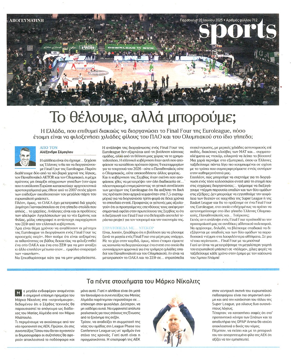 ΑΠΟΓΕΥΜΑΤΙΝΗ - 20 Ιουνίου 2025