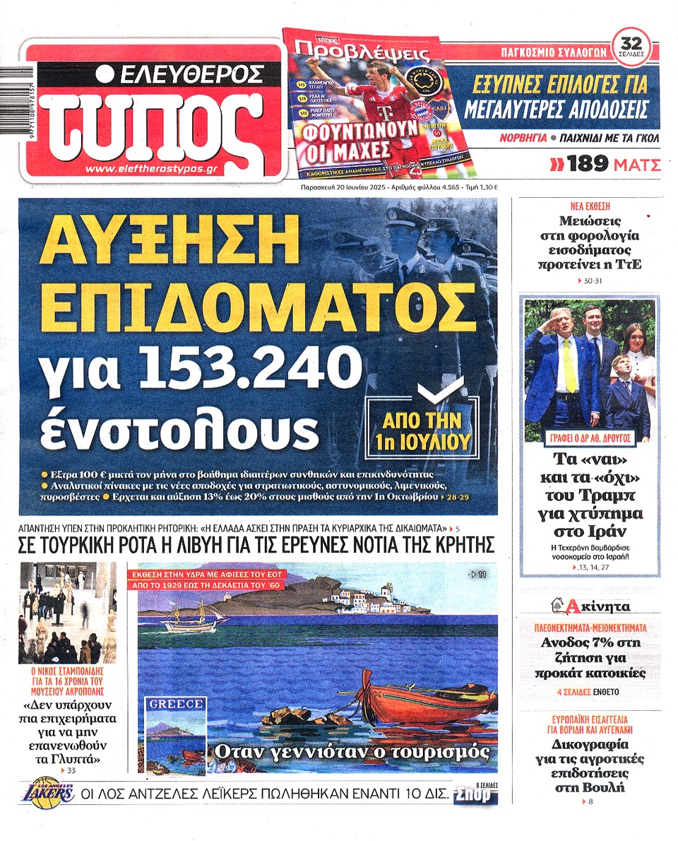 ΕΛΕΥΘΕΡΟΣ ΤΥΠΟΣ - 20 Ιουνίου 2025