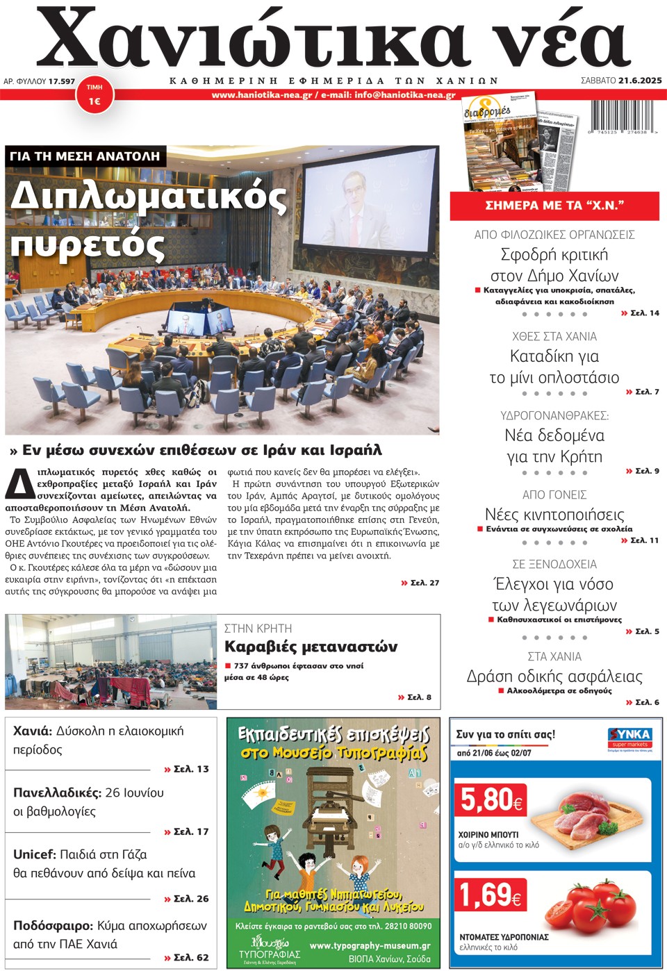 ΧΑΝΙΩΤΙΚΑ ΝΕΑ - 21 Ιουνίου 2025