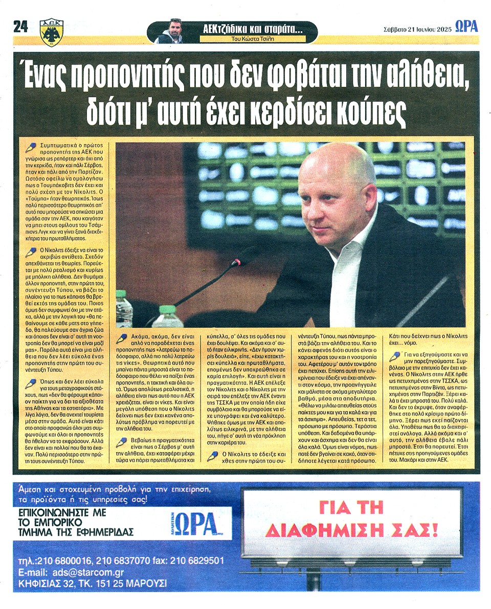 ΑΘΛΗΤΙΚΗ ΩΡΑ ΤΩΝ ΣΠΟΡ - 21 Ιουνίου 2025