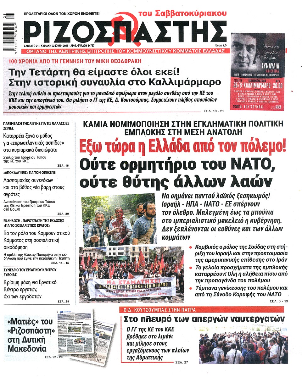 ΡΙΖΟΣΠΑΣΤΗΣ ΤΗΣ ΚΥΡΙΑΚΗΣ - 21 Ιουνίου 2025
