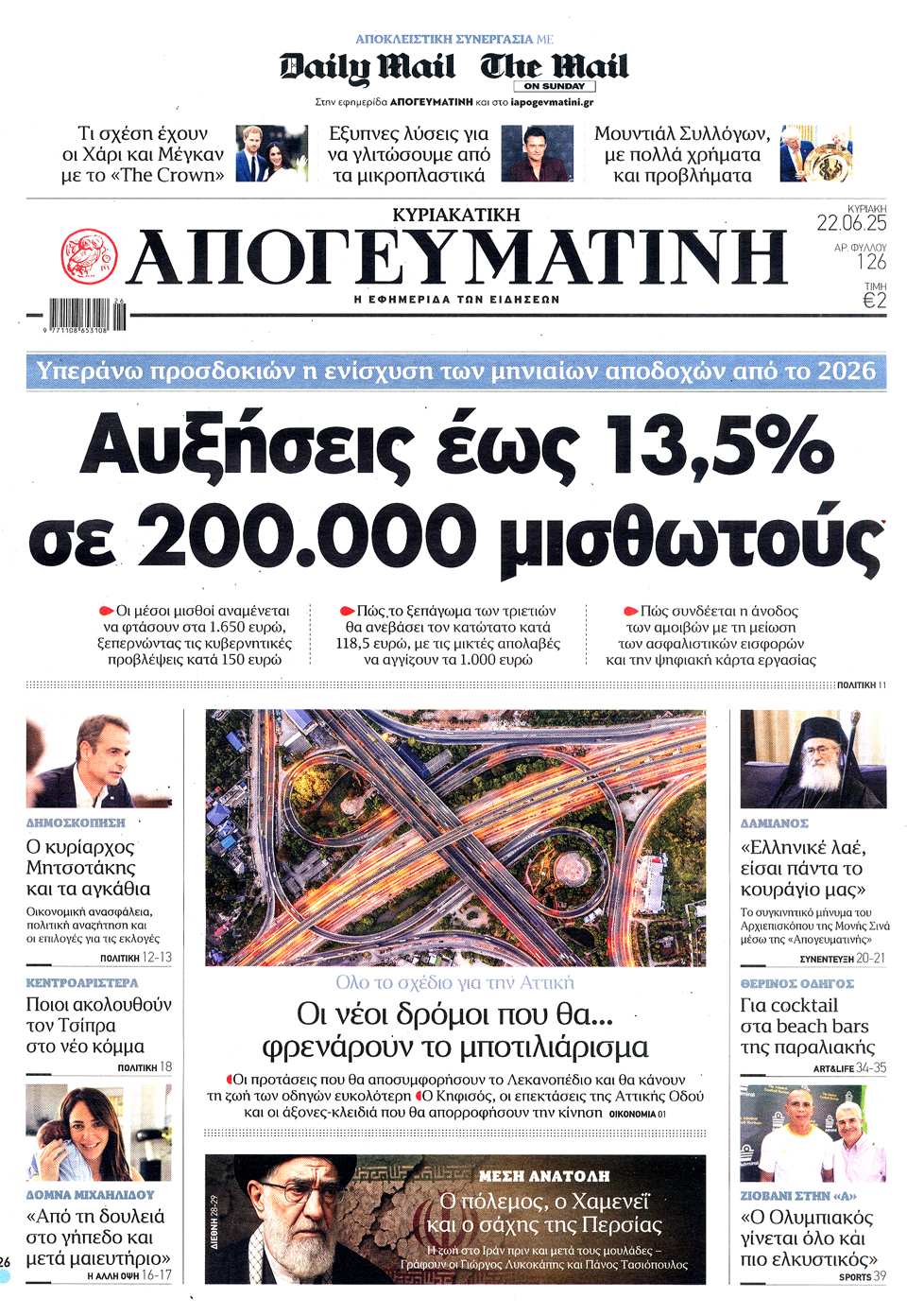 ΑΠΟΓΕΥΜΑΤΙΝΗ ΤΗΣ ΚΥΡΙΑΚΗΣ - 22 Ιουνίου 2025