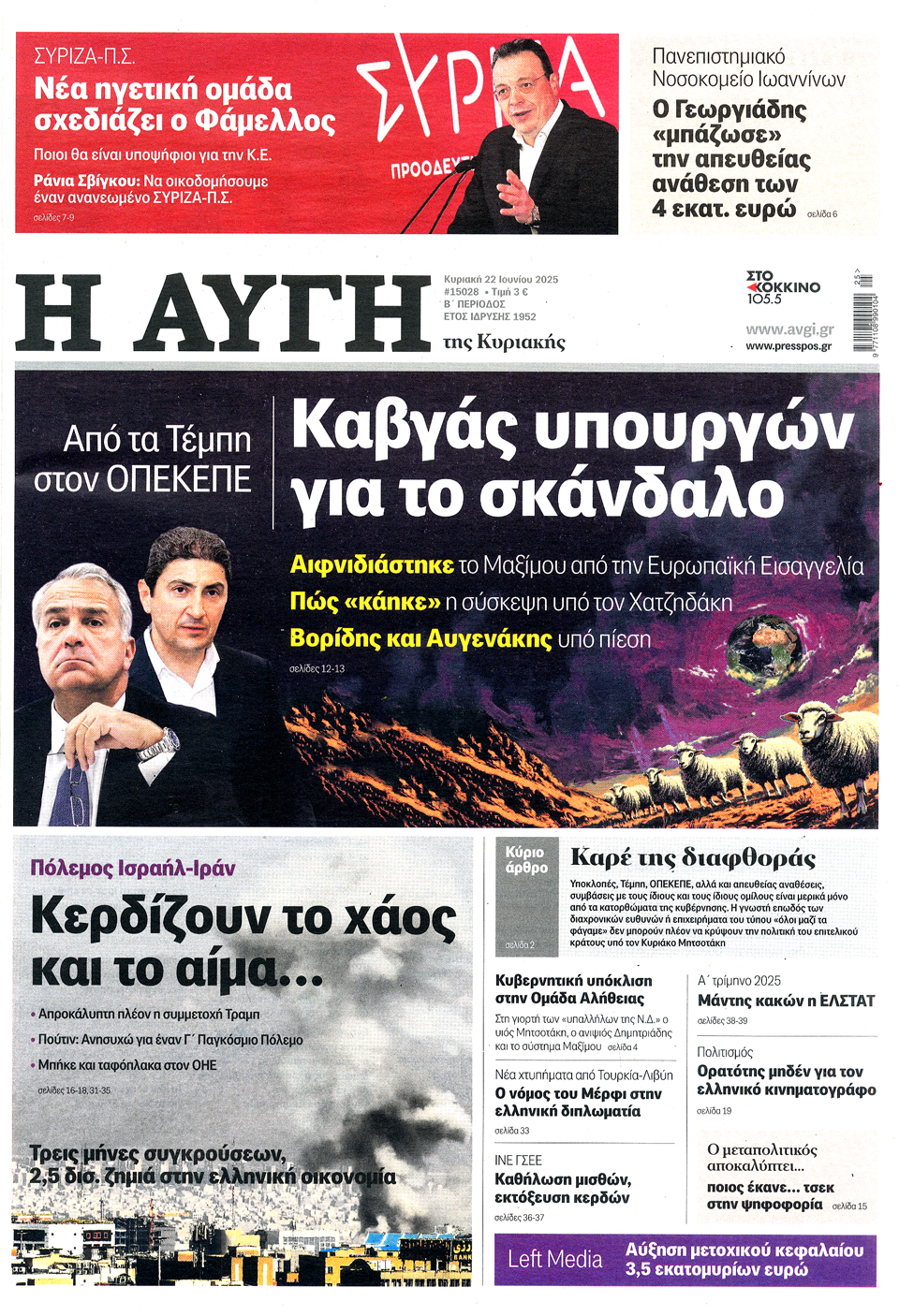 Η ΑΥΓΗ ΤΗΣ ΚΥΡΙΑΚΗΣ - 22 Ιουνίου 2025