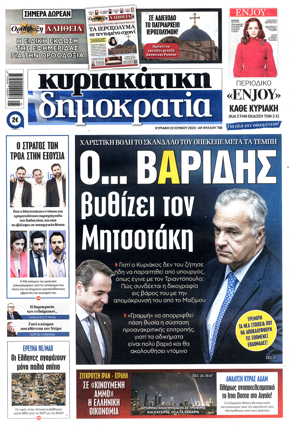 ΚΥΡΙΑΚΑΤΙΚΗ ΔΗΜΟΚΡΑΤΙΑ - 22 Ιουνίου 2025